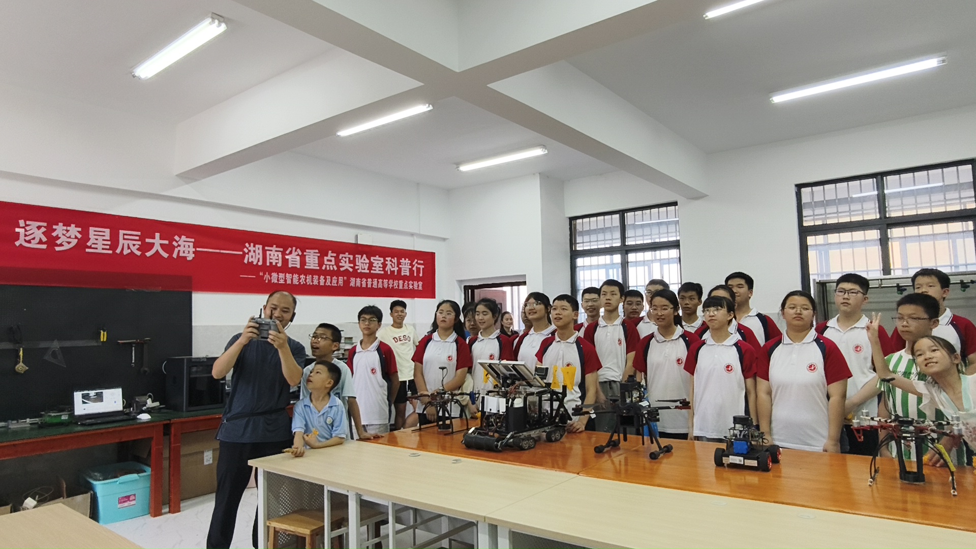 本网讯(通讯员 康平)为普及前沿科技知识,厚植青少年创新基因,树立远大的科技强国梦。6月1日,智能制造学院、旅游与文化产业学院、“小微型智能农机装备及应用”湖南省普通高等学校重点实验室与永州市柳子中学联合开启“牢记党的教导 争做强国少年”青少年科技创新之旅活动。