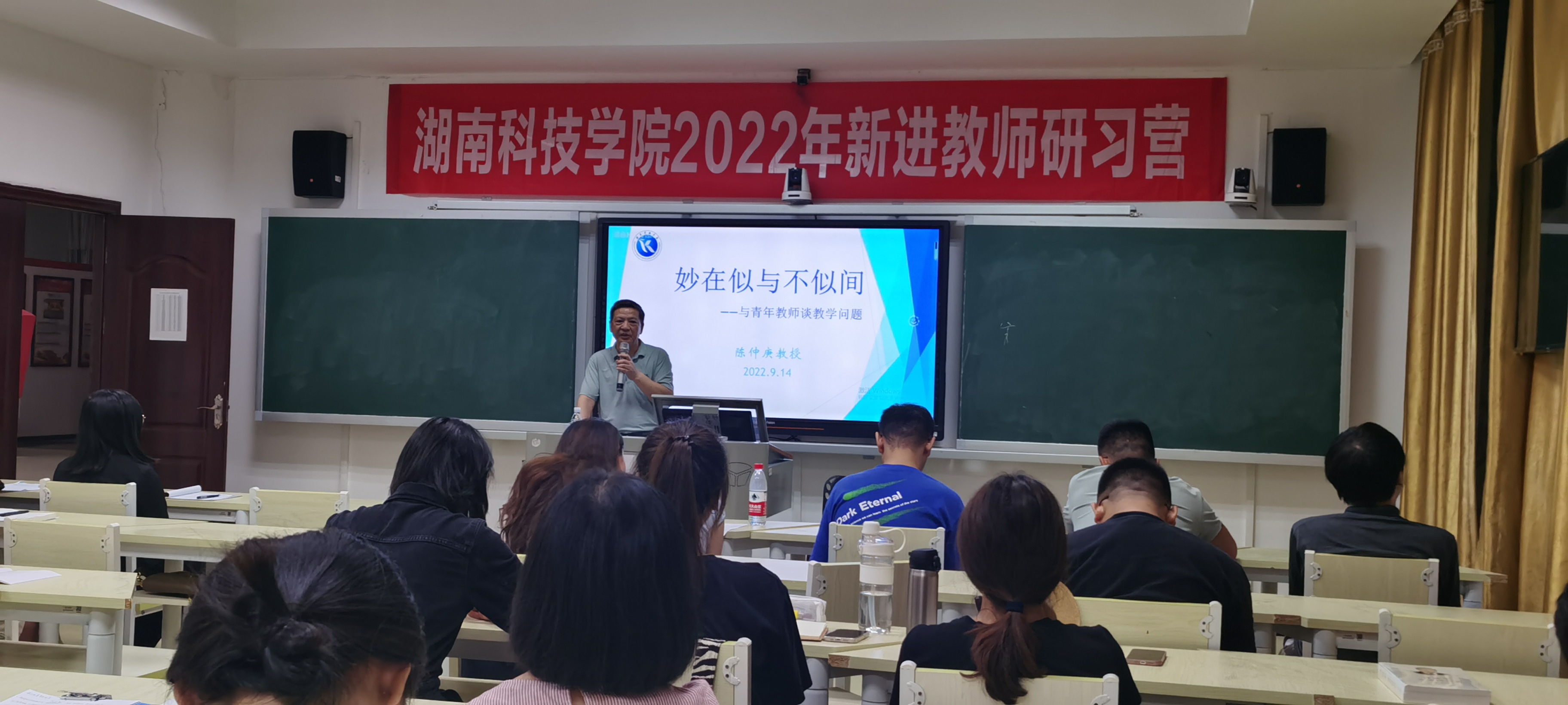 本网讯  9月14日晚,2022年新进教师研习营在潇湘大讲堂二楼教师发展中心智慧教室举行,2022年新进教师及转岗教师共计47人参加了研习。