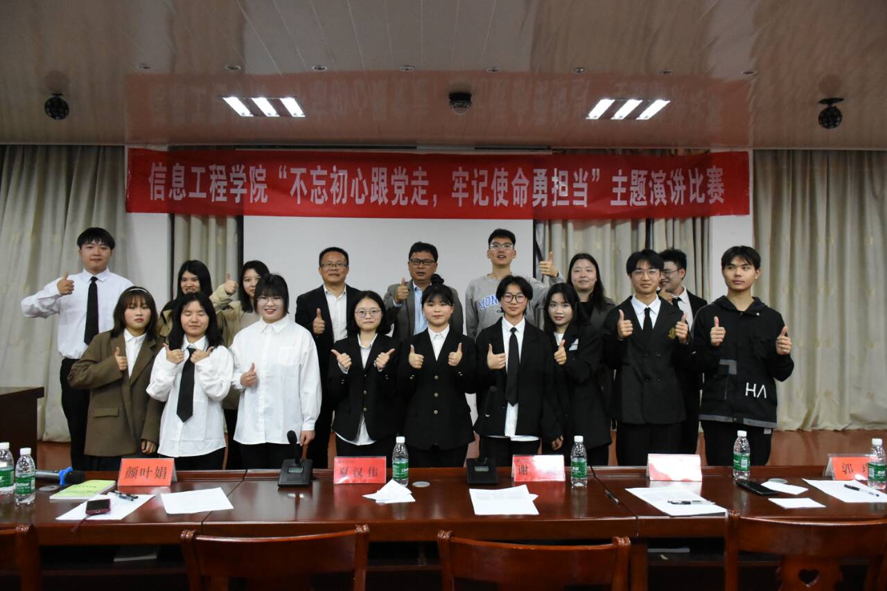 本网讯 5月12日晚,信息工程学院举行“不忘初心跟党走,牢记使命勇担当”主题演讲比赛。该院党总支书记谢一民、副书记夏汉伟以及全体辅导员共同担任评委,分党校、分团校全体学员参加。