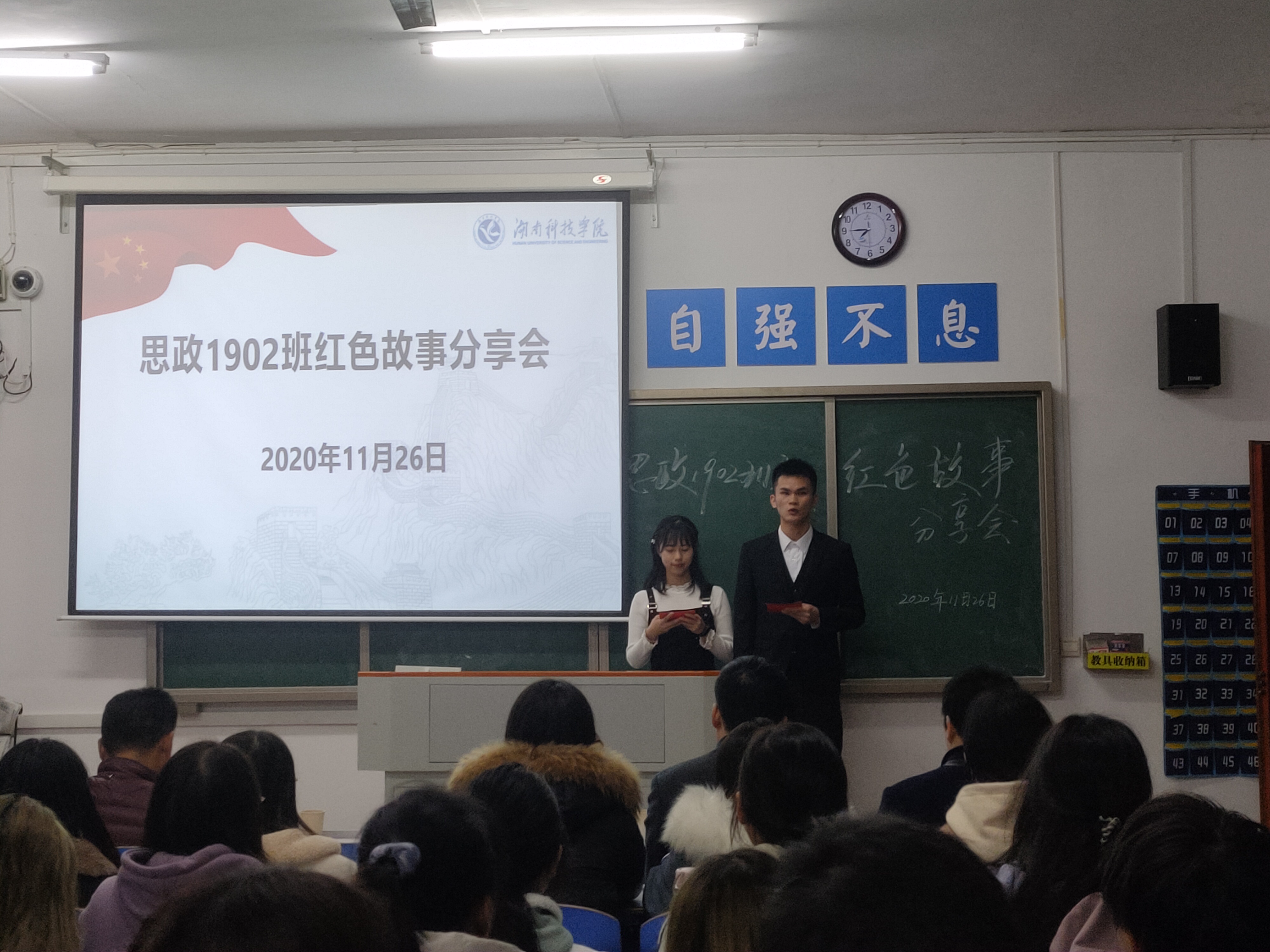 本网讯 11月26日晚,马克思主义学院思政1902班举办红色故事分享会,发展规划与学科建设处处长潘剑锋及该院党总支副书记高丹、副院长周芳检一同参加活动。