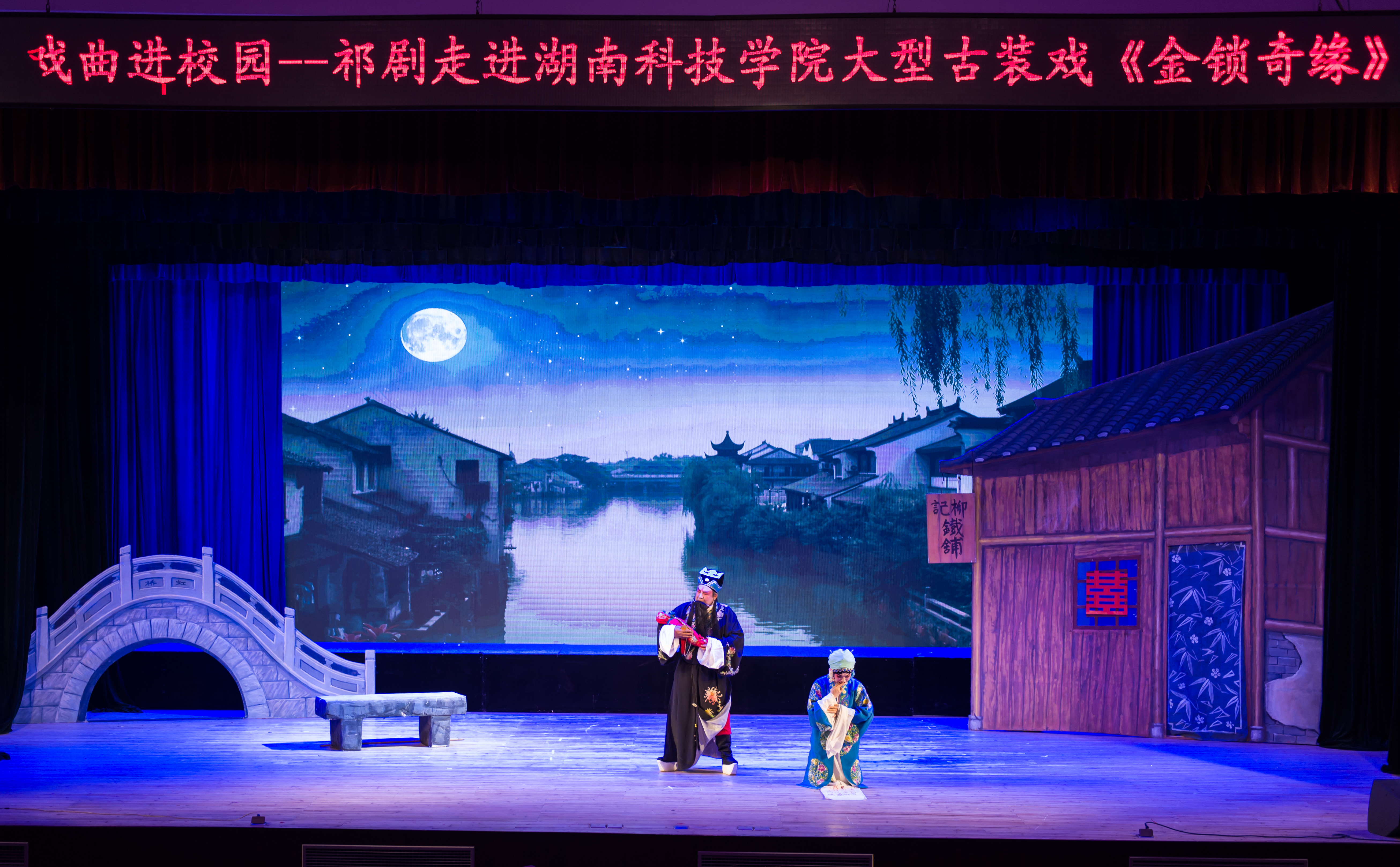 本网讯 11月28日至29日,大型传统戏剧祁剧在我校精彩亮相。副校长程智开,原正校级督导袁先友,永州群众艺术馆馆长赵斌以及祁剧爱好者共同观看了演出。