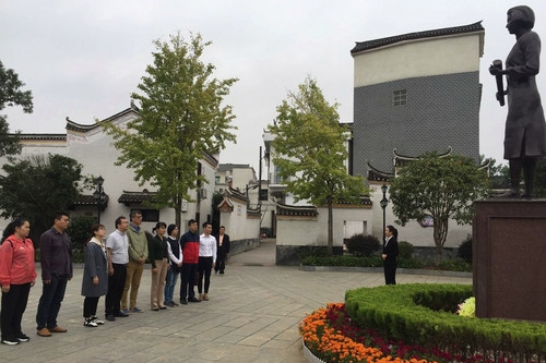 在道县,大家参观了何宝珍故居和陈树湘烈士纪念园。大家向陈树湘烈士墓和红三十四师烈士墓鞠躬致敬,在陈树湘烈士生平事迹陈列馆,大家仔细聆听了微党课《铁血逐梦,断肠明志》。