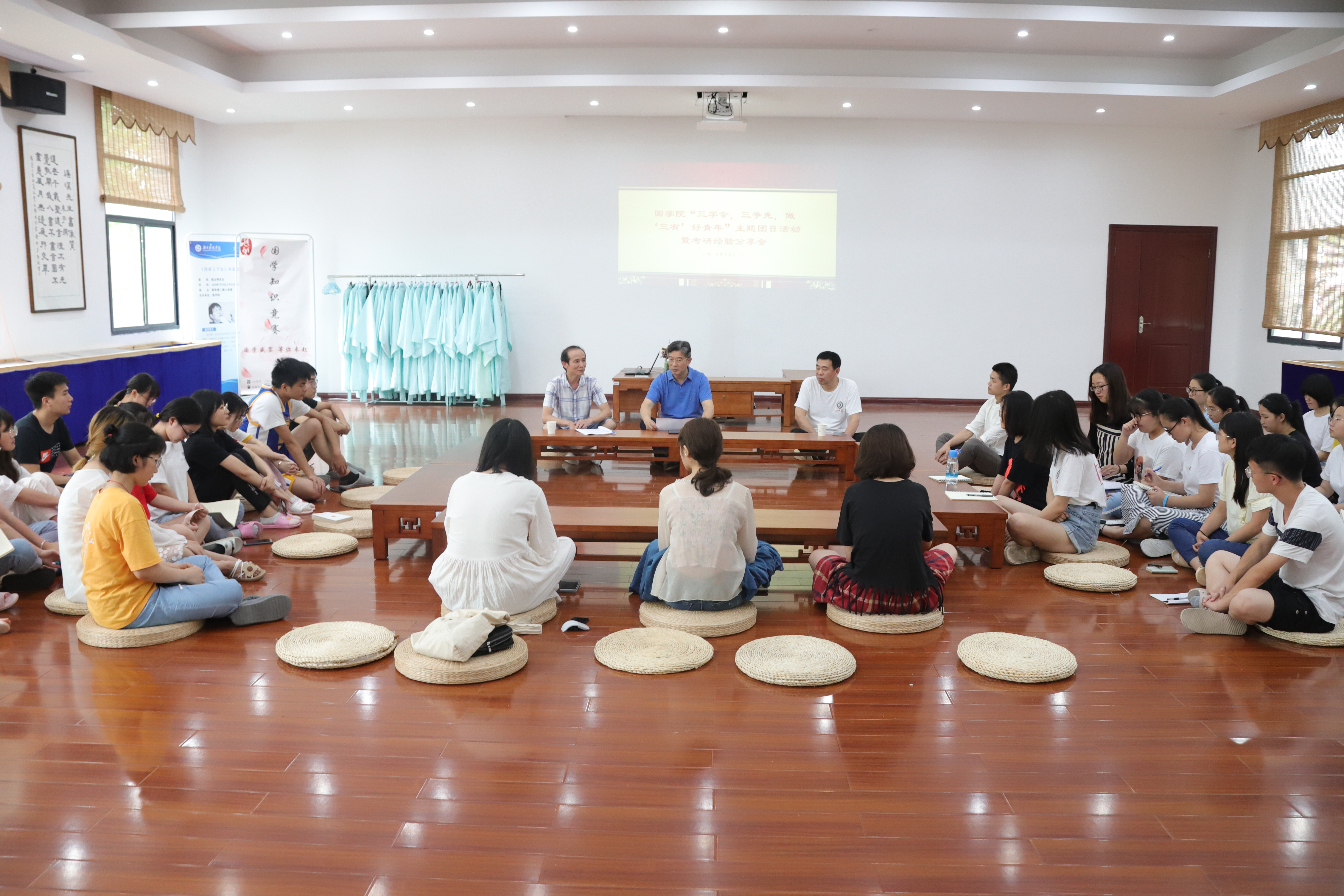 本网讯 6月11日下午,国学院在小成堂举行考研经验分享会,国学院吕玲娜、屈梦君、唐司妮和外国语学院杨佳等四位考研成功的同学,向国学院大一大二同学们分享考研干货经验。副校长宋宏福、国学院院长张京华党总支书记蒋诗堂参加。