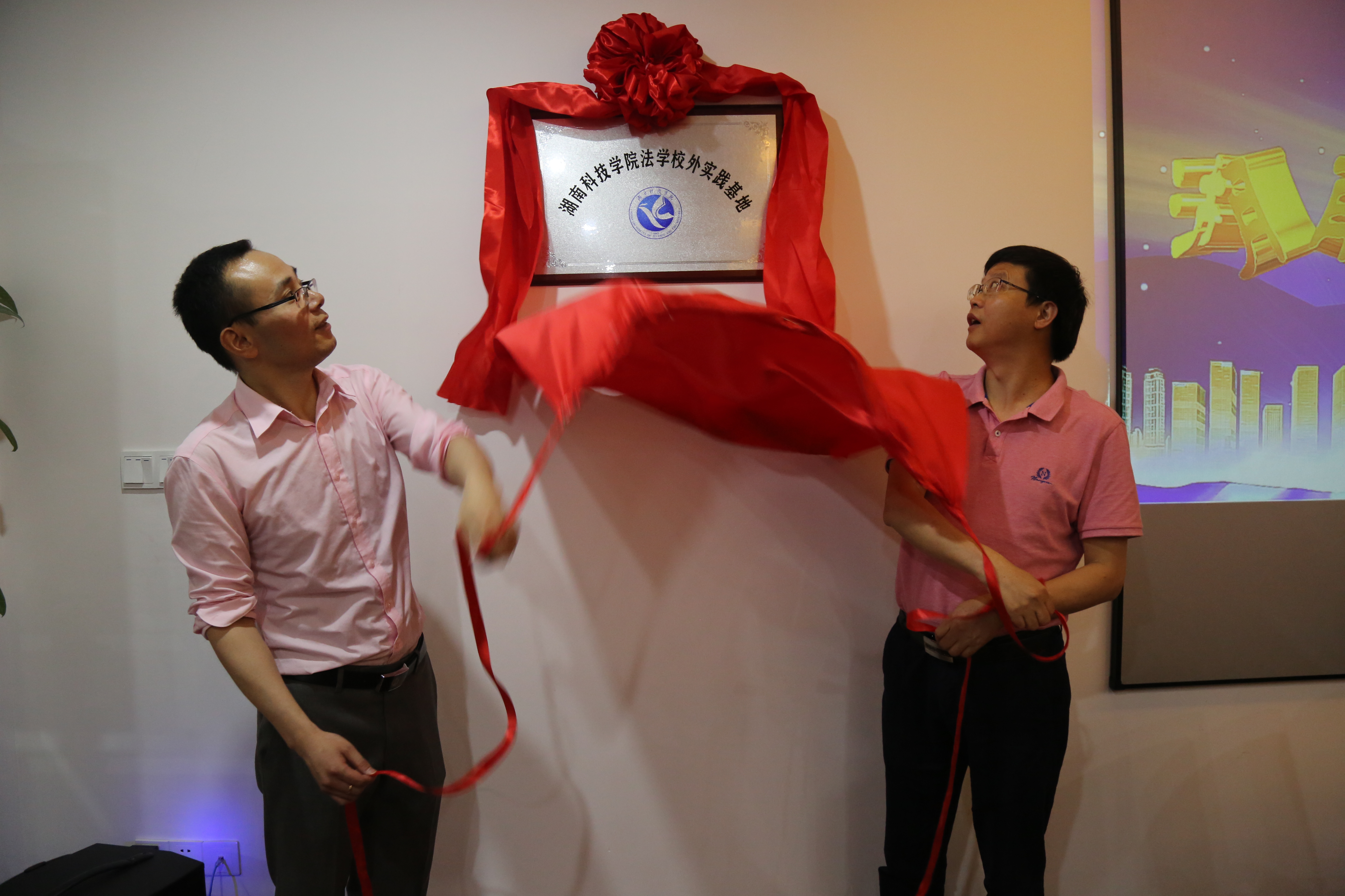 本网讯 6月10日上午,米兰官方端网页版法学专业校外实践基地揭牌仪式在湖南弘一(永州)律师事务所举行。湖南弘一律师事务所管理委员会主任周群翔、湖南弘一(永州)律师事务所主任刘志军,人文与社会科学学院院长潘雁飞、党总支书记谷显明共同为基地揭牌。