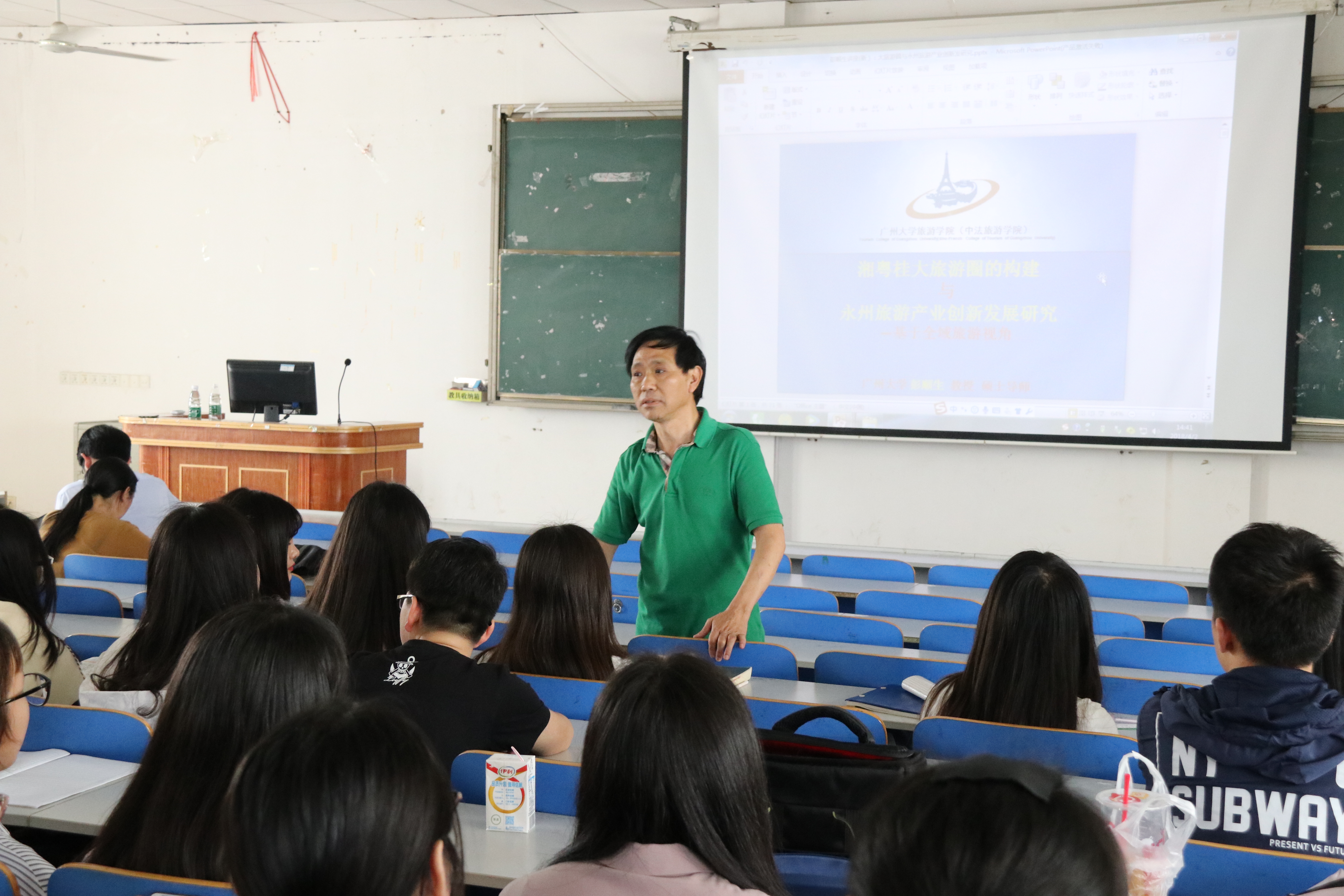 彭顺生为经管学院师生作了题为“湘粤桂大旅游圈的构建与永州旅游产业创新发展研究”的讲座从区位优势、交通、政府等方面分析了"湘粤桂大旅游圈"构建的必要性与可能性,同时指出永州旅游要依托湘粤桂大旅游圈平台培育旅游新业态。随后,彭教授就零陵古城建设项目提出了自己独到的见解。他认为发展永州旅游产业不能光依靠当地居民的消费,不仅要加强对外宣传,而且还一定要做出文化古城特色,才能吸引外地游客前来旅游,才能实现零陵古城项目建设的意义,推动永州旅游业的发展。