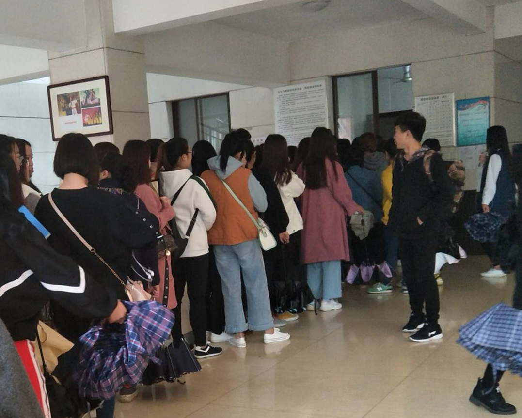 本网讯 清明假期,音乐与舞蹈学院尚美楼内琴声不断,前来练琴的同学络绎不绝,尽管气温较低,下着大雨,但是同学们学习的热情丝毫不减,一大早,前来练琴的同学便排成了长长的队伍。