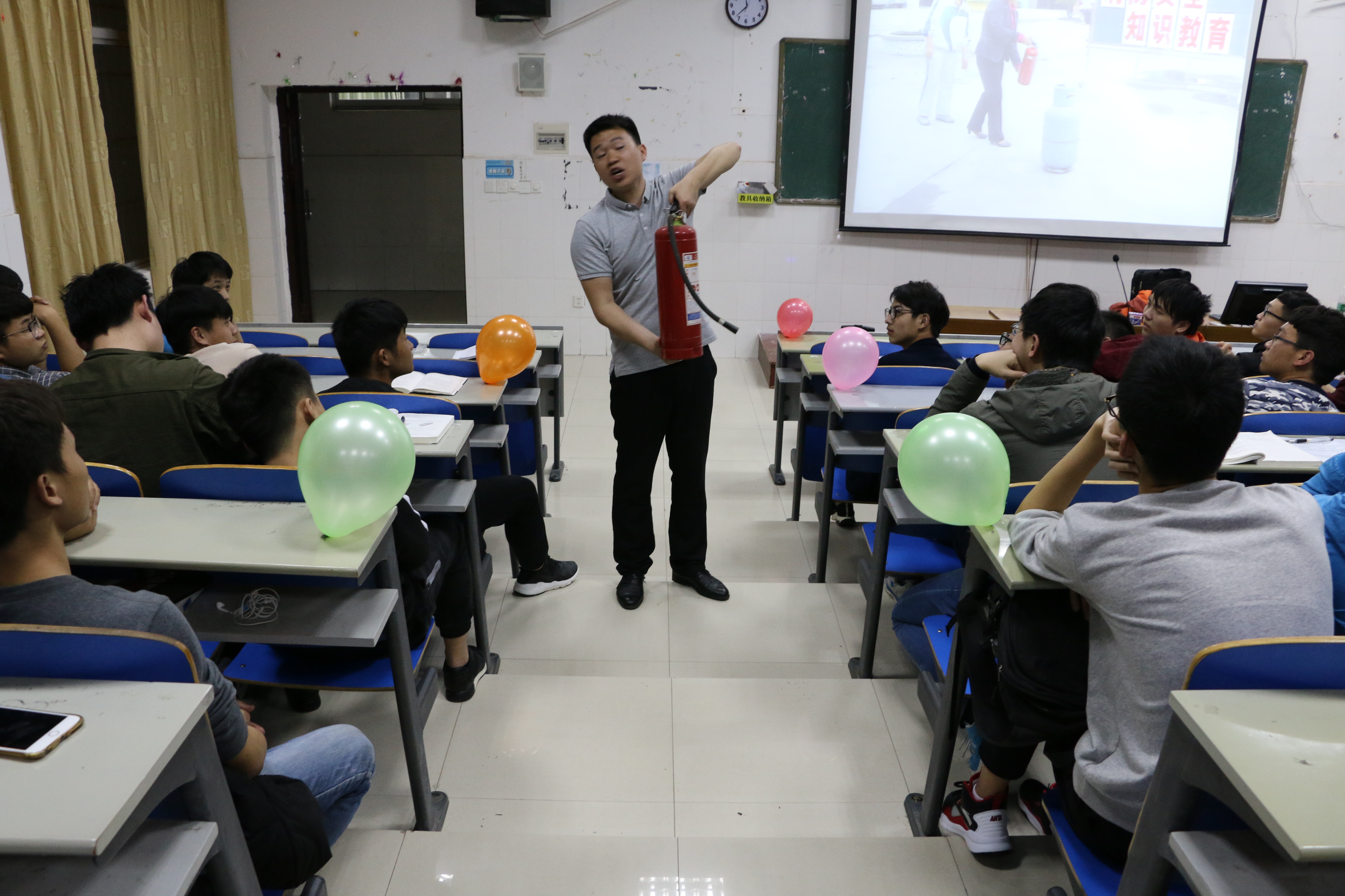 讲座中,蒋剑平通过经典视频案例、火灾现场图片、消防公益广告等形式讲解了各种消防安全基础知识、消防法律法规以及排查火灾隐患方法和火场逃生自救技巧,并现场为大家演示了灭火器和其它消防用品的使用,让同学们对日常生活中的各种火灾隐患有了充分的认识。