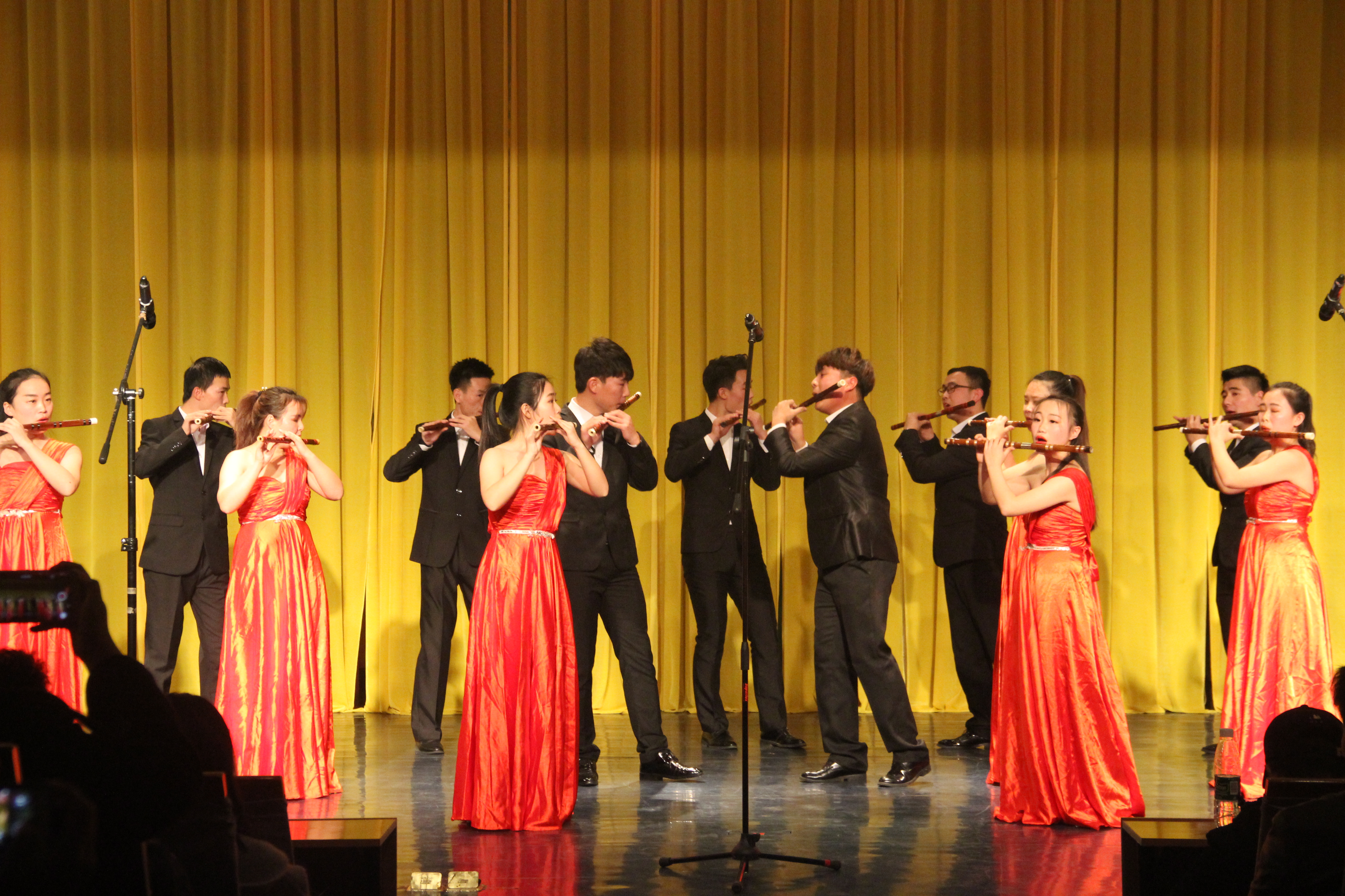 音乐会在一首十孔笛二重奏《西域行》中拉开帷幕,浓郁的西域风情,悠扬婉转笛声将观众带入西域壮丽多姿的天山,浩瀚的沙漠戈壁。随后亲切活泼的《牧民新歌》、热烈欢快的《快乐的小笛手》、悠扬婉转的葫芦丝曲《月光下的凤尾竹》、时尚而古雅的《流行串烧》、奔放豪迈的《鄂尔多斯的春天》、滑稽可爱的《诙谐的影子》音乐小品陆续上演,郭杰、刘伟、张宁、张进城、杨文娟、陈方玉、加豪燕、衡苗、张沐坤等同学的精湛演奏技巧赢得观众阵阵热烈掌声。 最后,一首齐奏《扬鞭催马运粮忙》为整场演出画上了完美的句号。