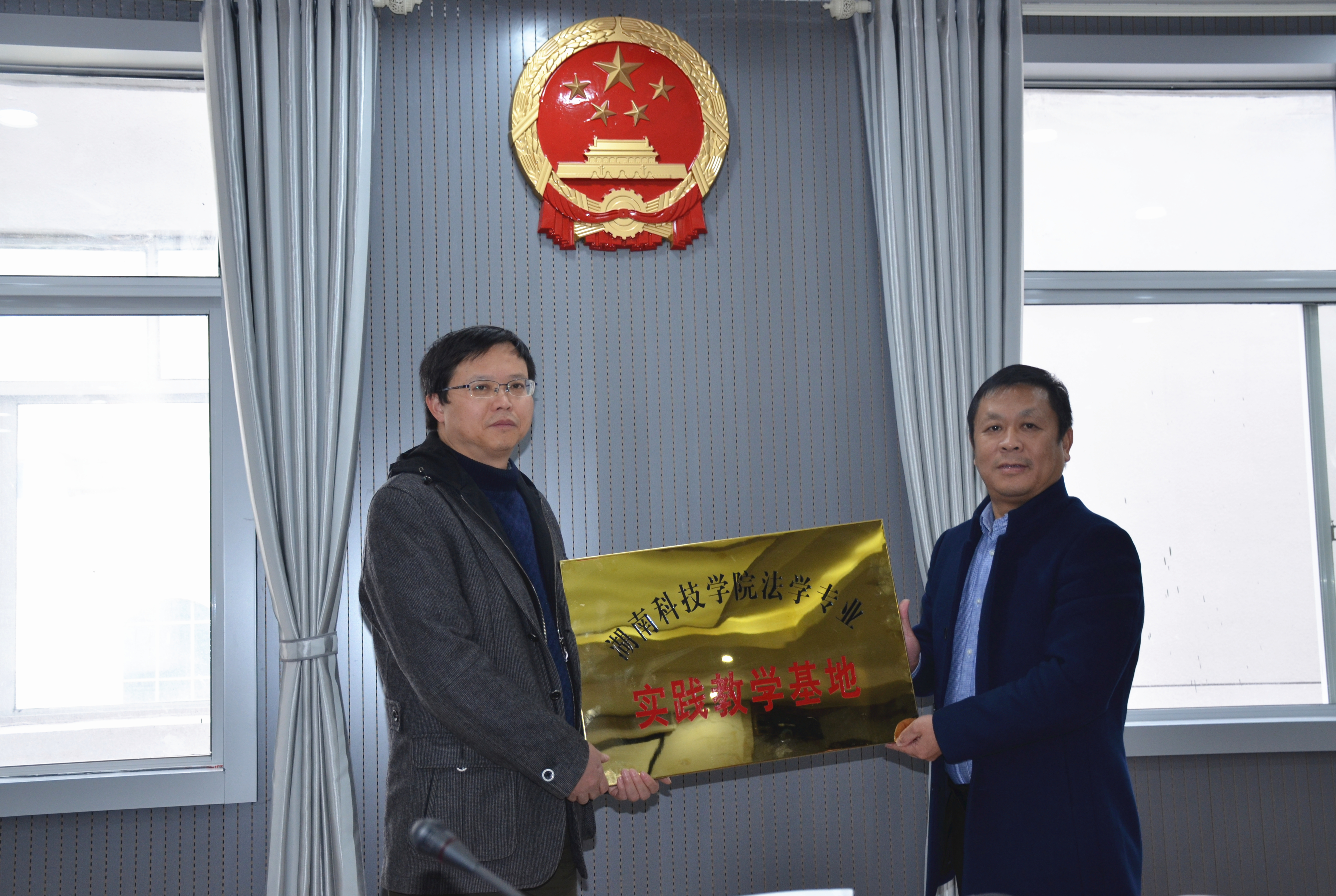 本网讯 12月7日,人文与社会科学学院与江华瑶族自治县人民法院共建法学实践教学基地签约及授牌仪式在江华法院举行。人文学院院长潘雁飞、江华法院党组书记、院长唐建新出席签约授牌仪式。