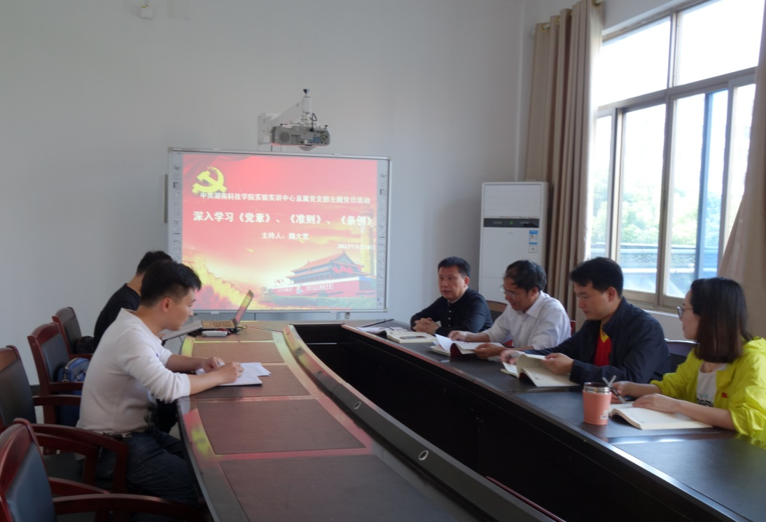 本网讯 为深入推进“两学一做”学习教育,促进党支部学习常态化、长效化,5月16日下午,实验实训中心直属党支部组织全体党员开展了“学党章 知条例 明准则 ”主题党日活动。