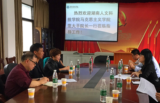 本网讯 4月15日,湖南人文科技学院马克思主义学院院长范大平、副院长陈灿芬一行来我校马克思主义学院考察交流,该院院长廖雅琴、副院长杨军、副书记李观求等参加交流座谈会。