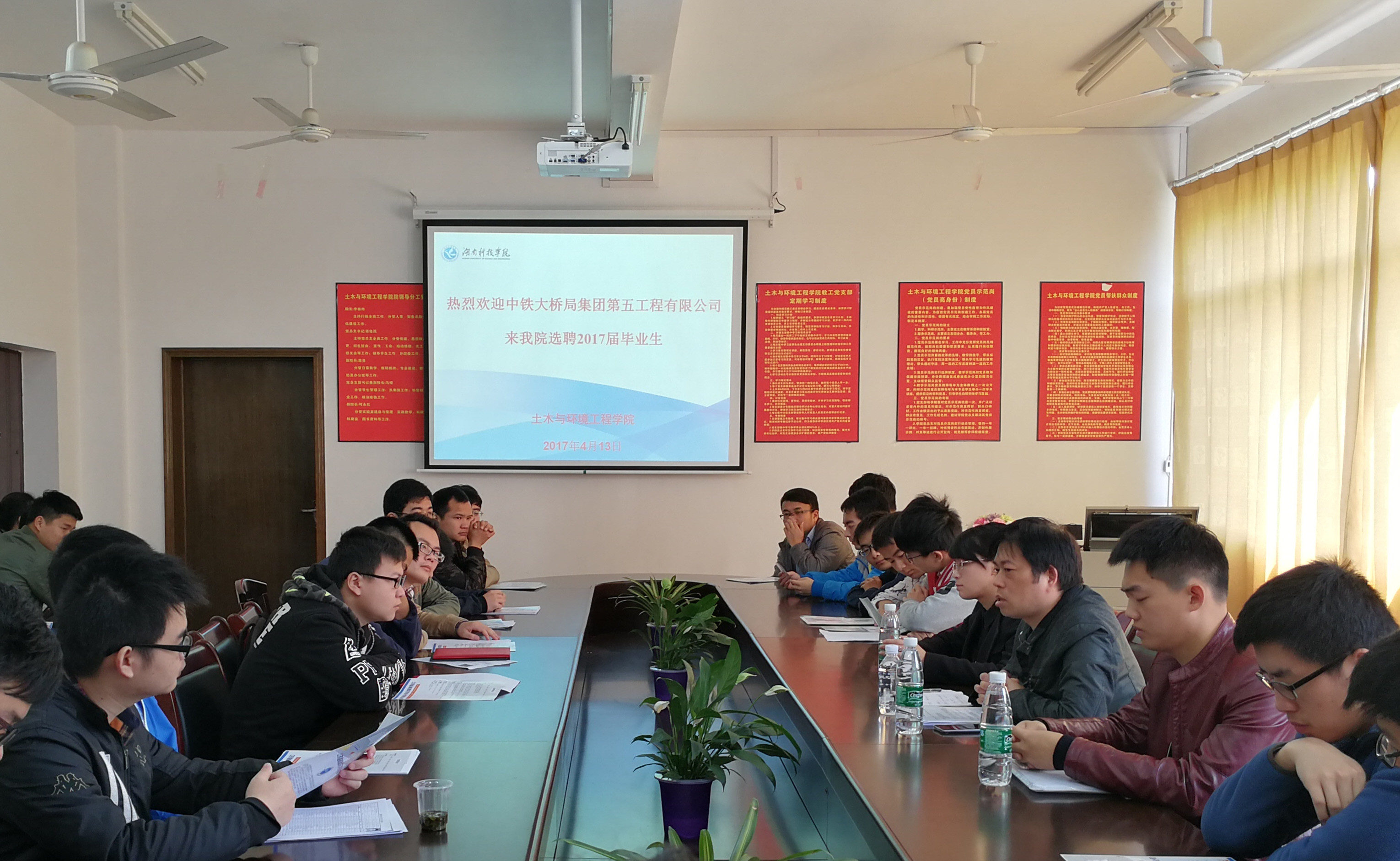 土木与环境工程学院成立就业工作小组,以宿舍为单位,通过走访宿舍、设置宿舍就业联络员等方式开展就业指导和服务工作,帮助毕业生明晰就业方向、转变就业观念。同时通过发动教师、校友等资源,广泛邀请企业来校进行专场招聘,拓展就业市场。截止目前,本学期已有中铁大桥局集团第五工程有限公司、中铁港航局集团桥梁分公司、中铁港航局集团第三工程有限公司、永州碧桂园房地产开发有限公司四家大型企业来校进行专场招聘,现场签约28人。