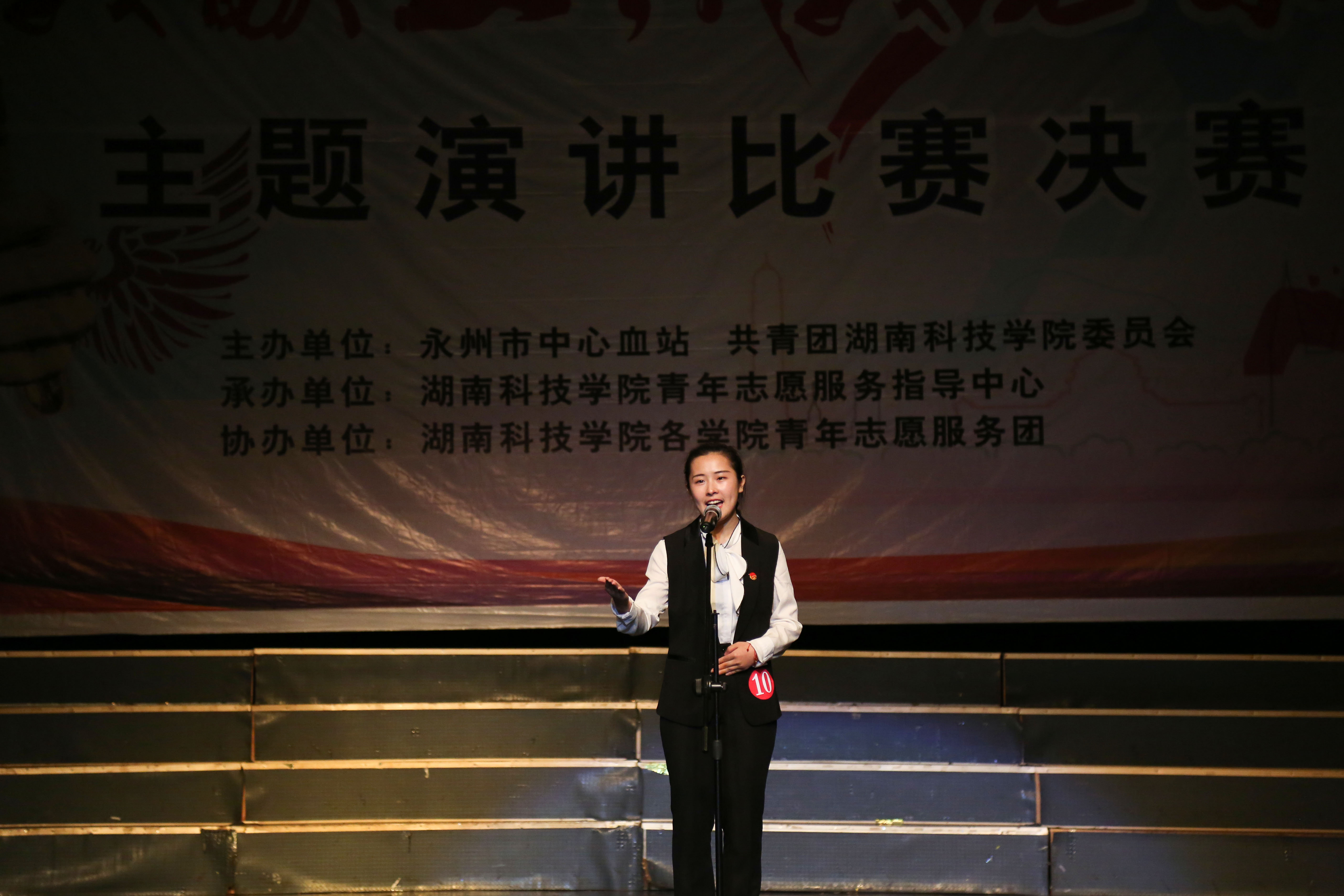本网讯 4月7日晚,由共青团米兰官方端网页版委员会、永州市中心血站联合主办,学校青年志愿服务指导中心承办的“我献血,我光荣”主题演讲比赛在音乐厅举行。永州市中心血站党支部书记、站长郑淑山,校团委副书记刘佳等应邀出席并担任评委。