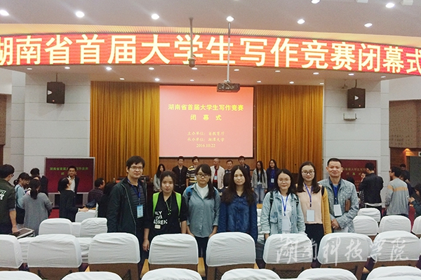 本网讯(通讯员 张能泉)10月22日,由省教育厅主办、湘潭大学承办的湖南省首届大学生写作竞赛在湘潭大学落下帷幕。我校人文与社会科学学院由刘新征、周繁花两位老师分别指导的陈壹丹、佘倩两位同学荣获三等奖。