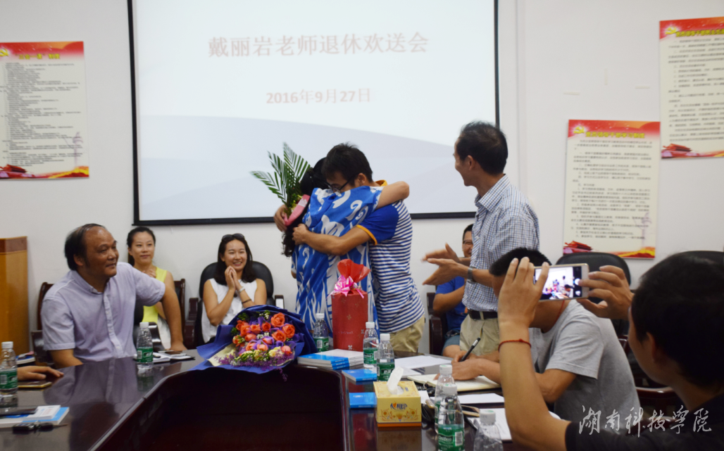 传媒学院院长杨增和深情赋诗盛赞戴丽岩老师十几年如一日的辛勤奉献:“对学生她热忱关怀,被学生尊称为‘戴妈妈’;对老师她帮助扶持,率先垂范;对工作她兢兢业业,无私奉献。”并对她为学校和学院的付出表示由衷的感谢,希望戴丽岩老师退休以后保重身体,常回学校看看。