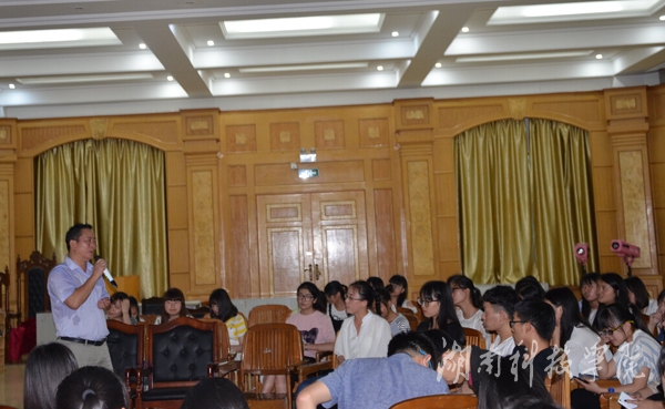 本网讯(通讯员 龙夏萍)6月12日下午,人文与社会科学学院在明德楼报告厅举办“校园精彩人生分享会”,全国教育创新先进工作者、广西知名中小学校长、该院中文专业优秀校友罗周胜先生作为特邀嘉宾与学生一起分享了他的成长经历、体会和感悟。