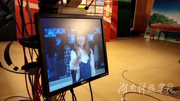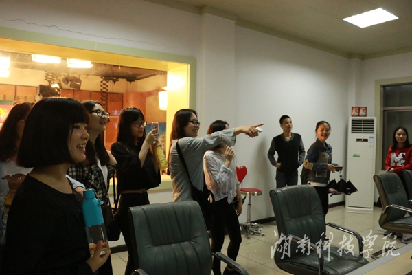 永州电视台相关负责人热情接待师生,并组织参观了台内演播室、虚拟演播厅、第一演播厅,介绍了相关电视新闻编辑、播放的原理及方式。在新闻联播演播室,同学们纷纷坐到主播的座位上,模拟新闻直播现场。