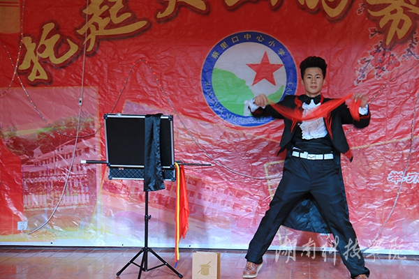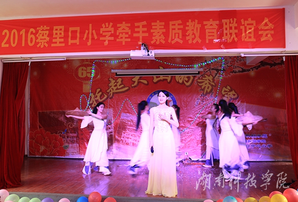此次联谊会上我校音乐与舞蹈学院与蔡里口小学齐齐表演精心准备的节目表演获得大家一致好评。《小人舞》以动感的串烧音乐、浮夸的装扮与面部表情出境,诙谐幽默地展现了小人物身上的正能量;魔术表演将联谊会推向了高潮,娴熟的技巧、灵活的手法,让观众看得目不转睛,台下掌声雷动;陶笛演奏美妙的天籁之音,让现场观众沉醉其中;群舞《小伙四弦马樱花》充满了生动、欢趣、幽默、和谐的情节,让大家沉浸在欢乐之中;歌伴舞表演《美在永州》,其甜美的嗓音及其身后翩翩动人、婀娜多姿的舞姿,不仅给予现场师生视觉上的和心灵上的震撼,而且仿佛已将永州的风景美和其深厚文化底蕴诠释地淋漓尽致。