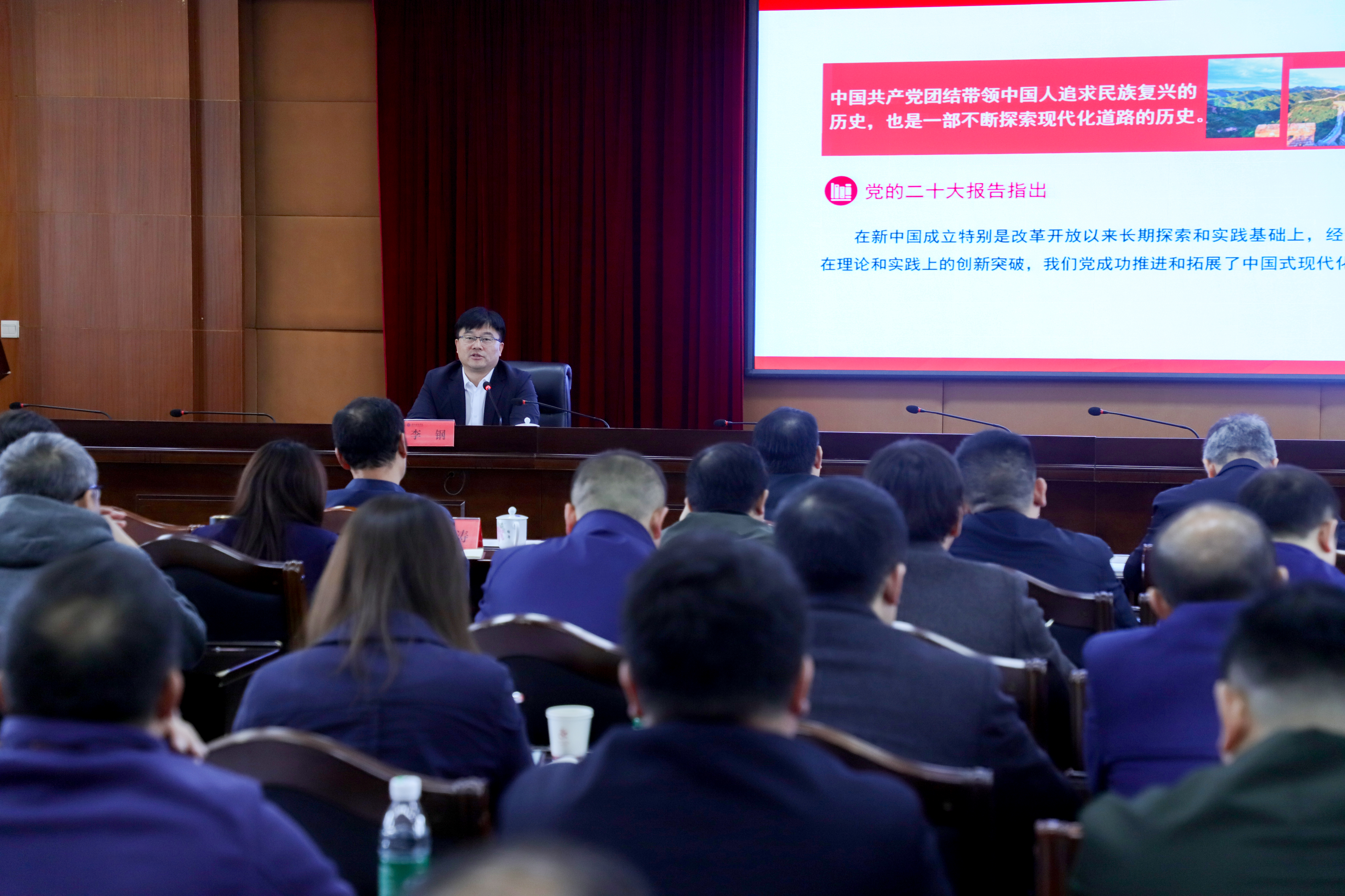 开班式后,李钢以“走好中国式现代化之路”为题作了首场专题辅导报告。他从“中国式现代化的探索历程”“中国式现代化的中国特色”“中国式现代化的本质要求”“中国式现代化的重大原则”“中国式现代化的高校担当作为”等五个方面进行了深入阐述。