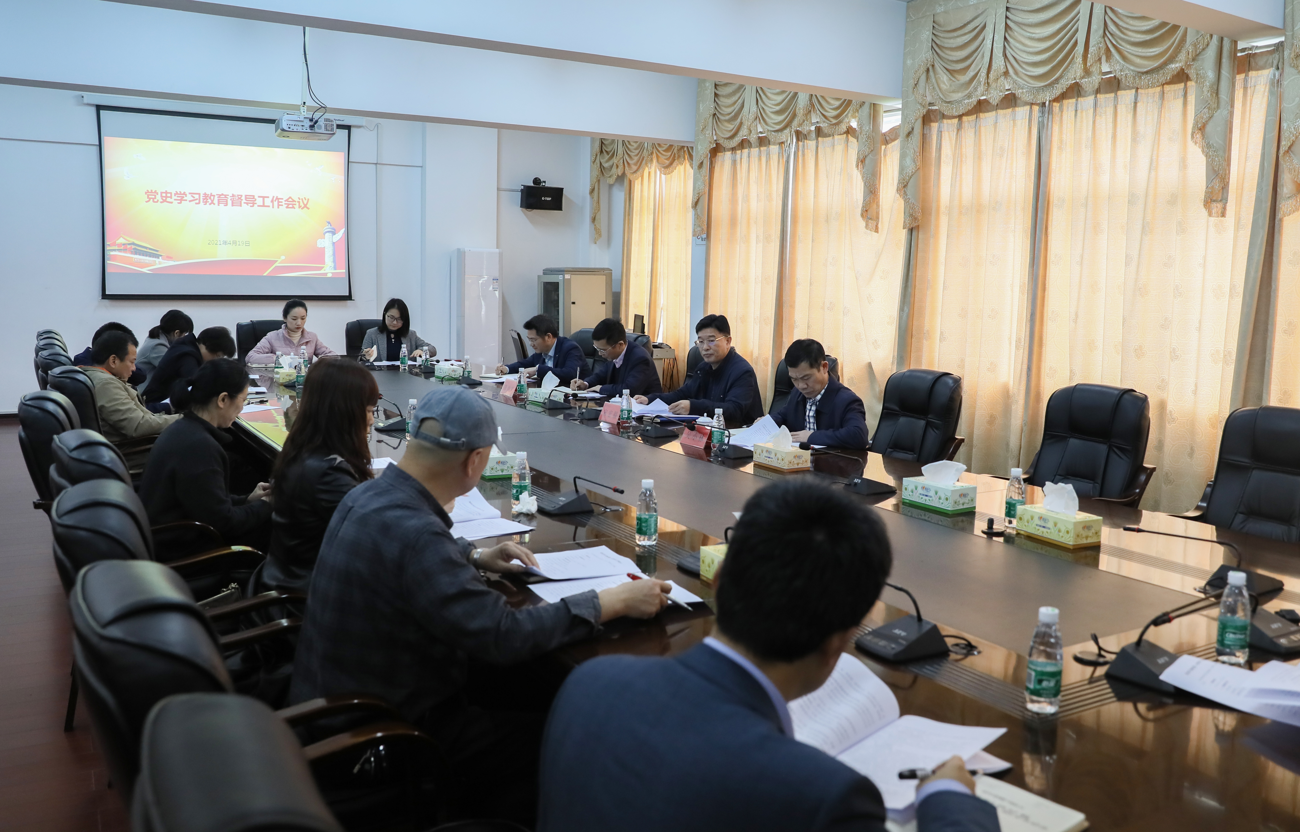 本网讯 4月19日上午,学校召开党史学习教育督导工作会议,成立党史学习教育督查指导组。党委副书记宋宏福,校领导吴小林、陈灿军,校党史学习教育督导组全体成员参加会议。