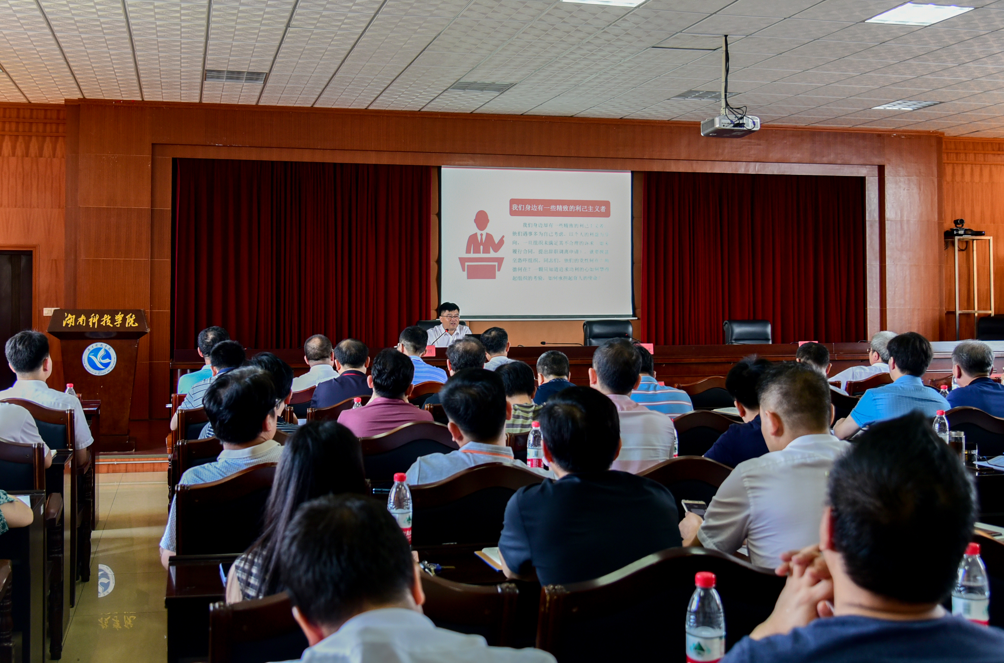 曾宝成强调,庆祝中国共产党成立100周年大会即将隆重举行。要把党史学习教育与深入学习贯彻落实习近平总书记在大会上的重要讲话精神结合起来,同当前正在做的事情结合起来,抓好“七一”前后党史学习教育的有效衔接,将学习成果转化为办实事、开新局的强大动力和智慧经验,推动“十四五”规划各项目标任务不折不扣落到实处,为建设特色鲜明的地方性高水平应用型大学而努力奋斗,为服务湖南省实施“三高四新”战略和地方经济社会发展做出新贡献,以实际行动和优异成绩庆祝建党100周年。