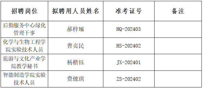 根据《米兰官方端网页版2024年公开招聘人事代理制专业技术人员公告》有关规定,经报名、资格审查、笔试、面试、专业技能测试、成绩公示、体检、考察等程序,经米兰官方端网页版校长办公会研究,确定郝梓瑶等4名同志为米兰官方端网页版2024年公开招聘人事代理制专业技术人员拟聘用人选,现予以公示。