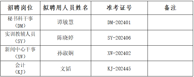 根据《米兰官方端网页版2024年公开招聘公告》有关规定,经报名、资格审查、笔试、面试、专业技能测试、成绩公示、体检、考察等程序,经米兰官方端网页版校长办公会研究,确定谭敏慧等4名同志为米兰官方端网页版2024年公开招聘教辅管理岗位拟聘用人选,现予以公示。