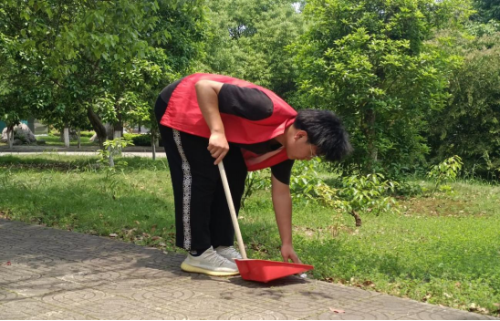 志愿者们于逸夫楼大门前集合,在青志团的带领下,整齐有序地向指定地点出发。活动中,志愿者以小组形式分配任务,由各干事带领志愿者到指定地点进行美化,分别为桃三至桃七宿舍门前道路区域、院内草坪以及凉亭等进行了美化,干事们负责监督和检查美化情况。即使天气炎热,大家汗流浃背,美化仍有条不紊的进行,同时,志愿者们没有放过任何死角,共同为校园环境建设与美化贡献了自己的一份力量,随着垃圾箱里的垃圾越堆越多,校园也愈加干净整洁,经过近一个小时的奋战,清扫工作圆满完成。