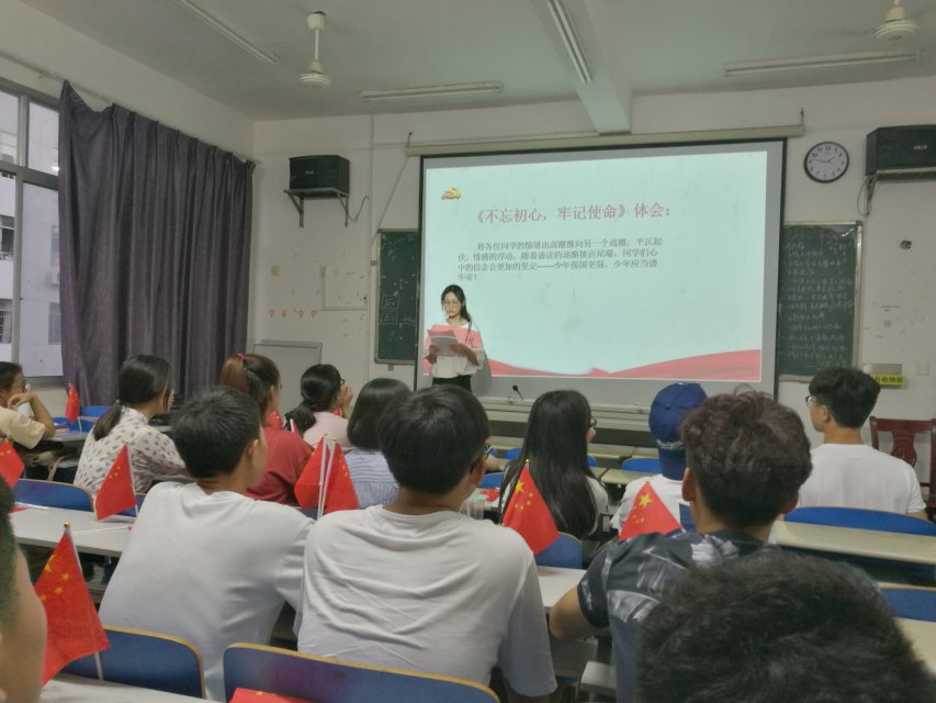 本网讯 (通讯员 王凯) 5月24日晚7点10分,由土木与环境工程学院17级分团委组织部举办的“不忘初心,牢记使命”主题团日活动如期开始。同学们积极参与相关活动,争相展现自己领会学习十九大的成果,一展土环学子风貌。 通过各个创新的比赛环节和发言形式,同学们再次深刻学习了党的十九大精神,对十九大的认知提升到了全新的高度。 活动环节中采用了“见字如面”,“集体大合唱”“视频宣传”等活动形式。党歌作为党的文化传播的一类载体,以通俗的方式传颂党的丰功伟绩和精神思想,同学们对党歌的熟知极大程度上显现了同学们对于十九大文化的热爱,既是同学们党的十九大精神学习的体现,又表现了土环学子深厚的文化底蕴和综合素质。 值得一提的是,在“朗诵”环节,主持人邀请班级代表上台朗诵关于活动主题“不忘初心,牢记使命”文章。在一言一语之间,台上的同学们用语言描绘自己对十九大的认知和感悟。所有感想,所有体会,都在此刻凝聚。不同之前环节氛围的激昂热烈,此刻场内的氛围前所未有的沉静,同学们静心思索,对十九大的理想认识到达了前所未有的高度。 活动旨在继续深入学习贯彻十九大的精神思想。各班团支书进行十九大宣讲,向全体学生传达阶段学习成果,收获了同学们热烈的掌声和赞扬。 在同学们洋溢的热情中,本次“不忘初心,牢记使命”主题团日活动圆满落幕。同学们挥舞五星红旗,高唱团歌的精神面貌印在了每个人心中。通过本次活动,同学们获益匪浅,对十九大的精神有了全新的认知和理解。