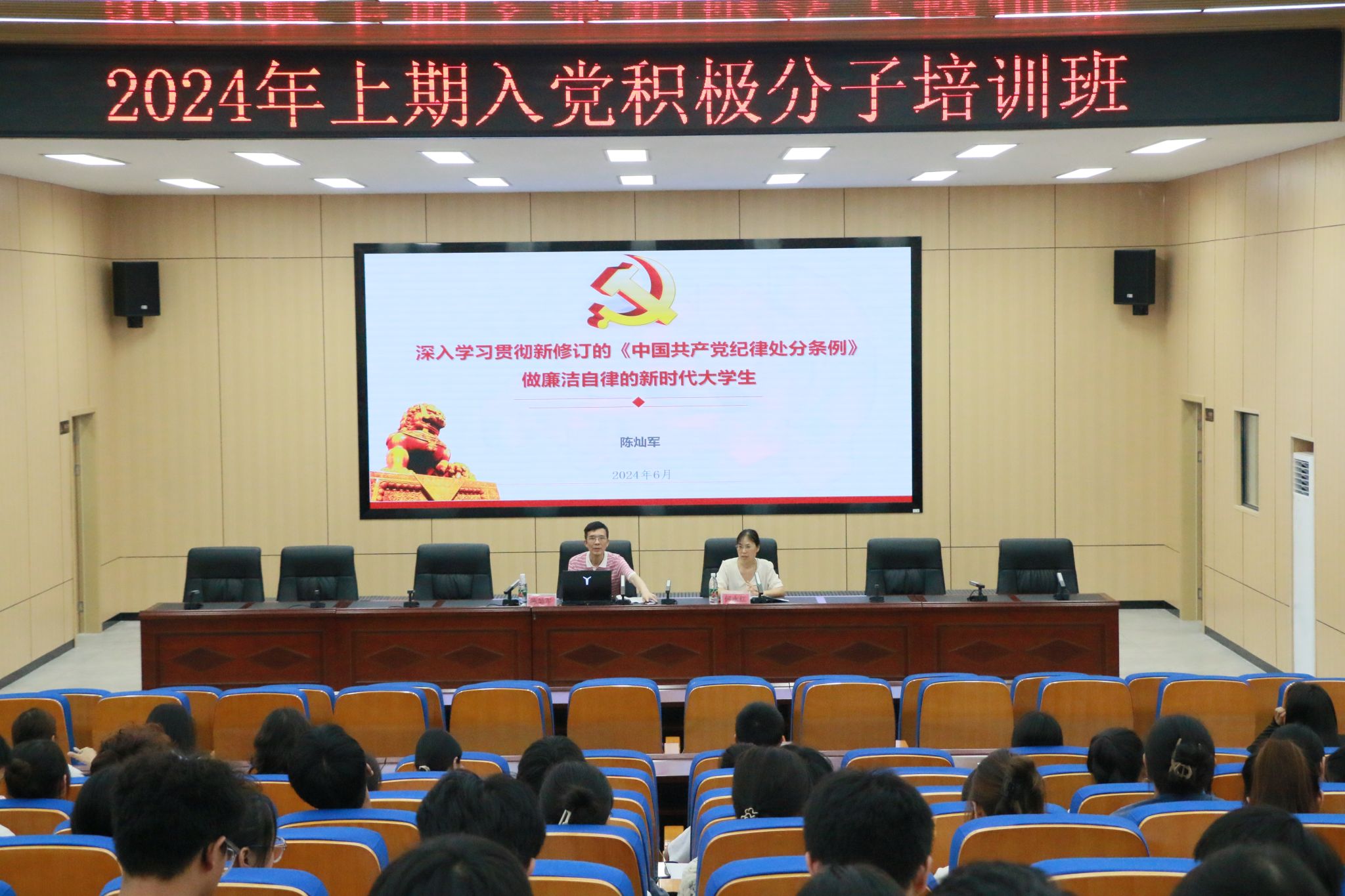 本网讯(通讯员 雷湘 蒋思琪 潘艳丽)6月12日晚上,校党委委员、纪委书记陈灿军在明德楼报告厅给土木与环境工程学院、理学院和音乐与舞蹈学院共200余名入党积极分子上党规党纪专题党课。