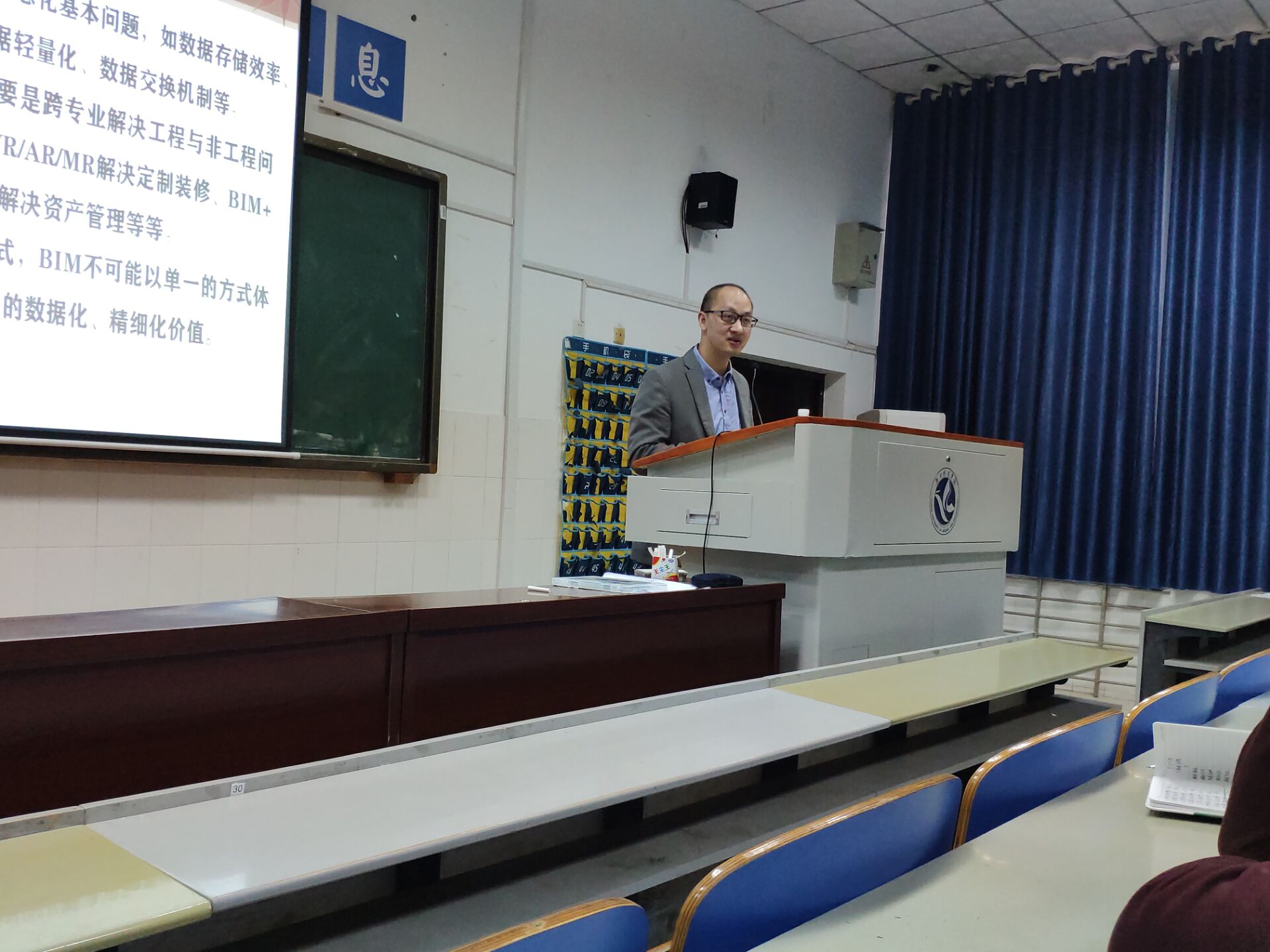 周基从BIM技术的本质、BIM开发的作用以及美国BIM技术等方面展开。他表示,BIM技术的应用范围非常广泛,尤其在城市策划和场地分析等方面极为重要,希望此次讲座能加深同学们对BIM技术的了解,培养了同学们对BIM技术的学习兴趣,为以后深入学习BIM技术打下坚实基础。