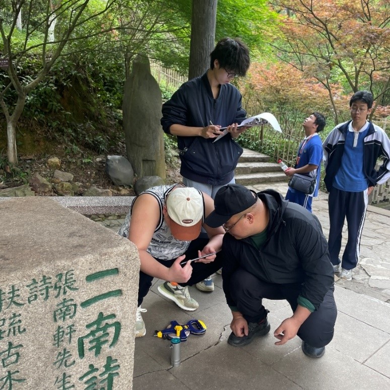 师生共同走访了景区中65处不可移动文物(其中国家级文物保护单位4处、省级文物保护单位16处、市级文物保护单位40处、一般不可移动文物点5处)、75个调研点,对岳麓山文物受冰灾损坏情况进行摸底,仔细检查文物并利用数字拍照、无人机和文字记录的方式评估文物受损状况,并现场就建筑中受损的问题进行交流,提出修缮建议方案。