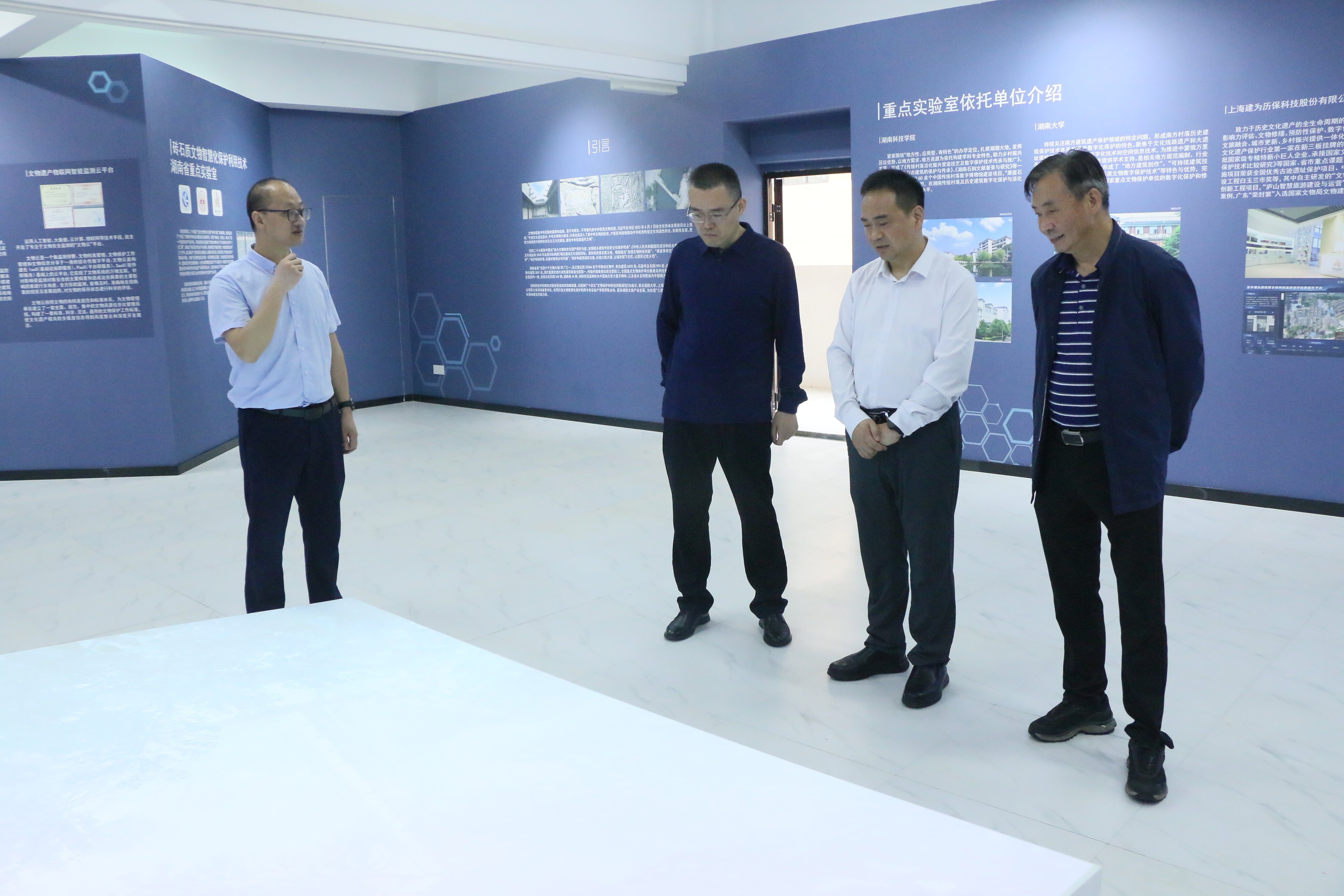 许建和一行首先参观了砖石质文物智慧化保护利用技术湖南省重点实验室、土环学院实验实训场地和教学设施等。他们详细了解了学院的师资力量、专业设置、硬件条件、科研成果以及学生发展情况,对学院在教育教学和人才培养方面所取得的成就给予了高度评价。