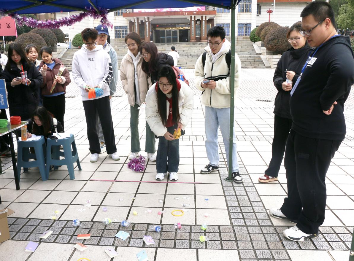 本次活动主要包括你画我猜,正话反说,套圈等小游戏,为激发同学们的兴趣及热情,凡参与同学都可获得可爱多样的精美小礼品。在文化广场活动现场,排队的女生们络绎不绝,活动气氛热烈,吸引了许多同学围观。在套圈游戏中,同学们瞄准目标,找准角度,将心仪的奖品收入囊中。在你画我猜游戏中,同学们别具一格的画法既充满着神秘与惊喜,又考验着双方的默契。我院文体部同学们周密地策划,耐心地给参与同学讲解游戏规则、计分、并记录她们参与活动的美好瞬间,整个活动过程中充满了同学们的欢声笑语。