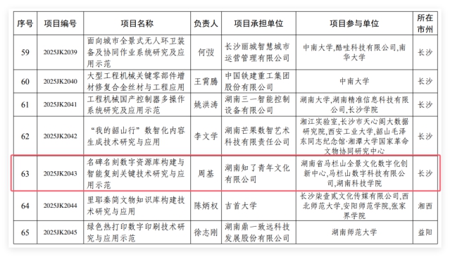 本网讯(通讯员 胡佳星 谢超)近日,湖南省科技厅发布了《关于2025年度湖南省重点研发计划项目立项的通知》,正式立项223项2025年度湖南省重点研发计划项目,由我校“砖石质文物智慧化保护利用技术湖南省重点实验室”主任周基教授作为负责人,湖南知了青年文化有限公司作为项目承担单位,湖南省马栏山全景文化数字化创新中心、马栏山数字科技有限公司、米兰官方端网页版作为参与单位的科研项目“名碑名刻数字资源库构建与智能复刻关键技术研究与应用示范”成功入选。