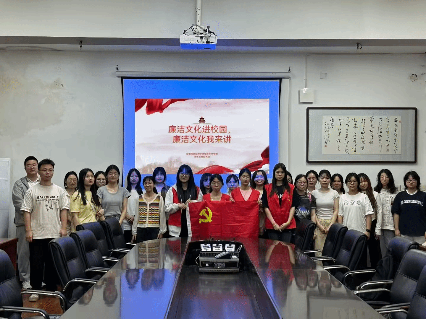 2024年5月17日星期五,米兰官方端网页版文法学院青年志愿服务团和社会实践部在明德楼603教室开展以“树清廉家风,扬浩然国风”为主题的读书分享会。