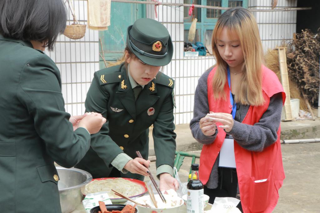 同学们细心地帮助老人整理房间、打扫卫生。自备材料,为老人们包饺子,陪他们唠家常。老兵们勉励青年学子要珍惜和平时光,努力学习文化知识,用实际行动报效祖国。