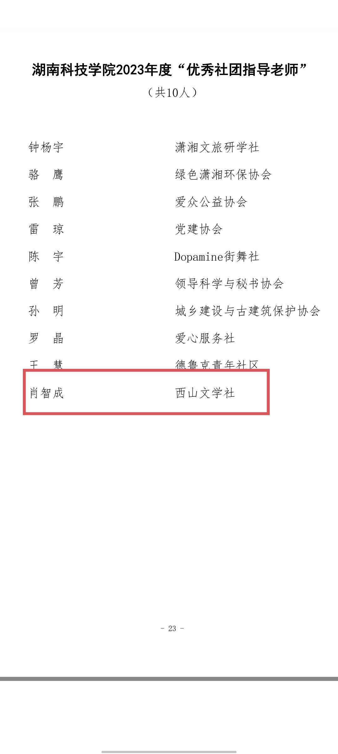 本网讯(通讯员 唐文倩)4月29日下午,米兰官方端网页版2023年度五四表彰大会在潇湘大讲堂举行。米兰官方端网页版党委书记李钢、党委委员副校长何福林等领导出席活动,并为获奖团体和个人颁奖。其中,西山文学社荣膺“十佳社团”荣誉称号,指导老师肖智成荣获“优秀指导老师”称号。