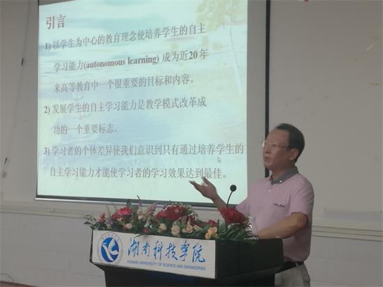英语专业教育讲座于博雅楼东三举行,欧华恩院长亲自为英语系大一新生上了一堂别开生面的英语课。英语教育讲座中,欧华恩院长指出以学生为中心,重点培养学生自主学习为重点的教育方针,并结合具体的英语专业知识讲明了英语学习的常见误区,介绍了成功学习英语必须具备的要素。路漫漫其修远兮,欧院长希望新生在大学生活中不要懈怠,要珍惜时间,寻找有效的学习方法,增进自己的专业能力。欧院长用幽默风趣的言语和广博的知识征服了台下所有大一新生。