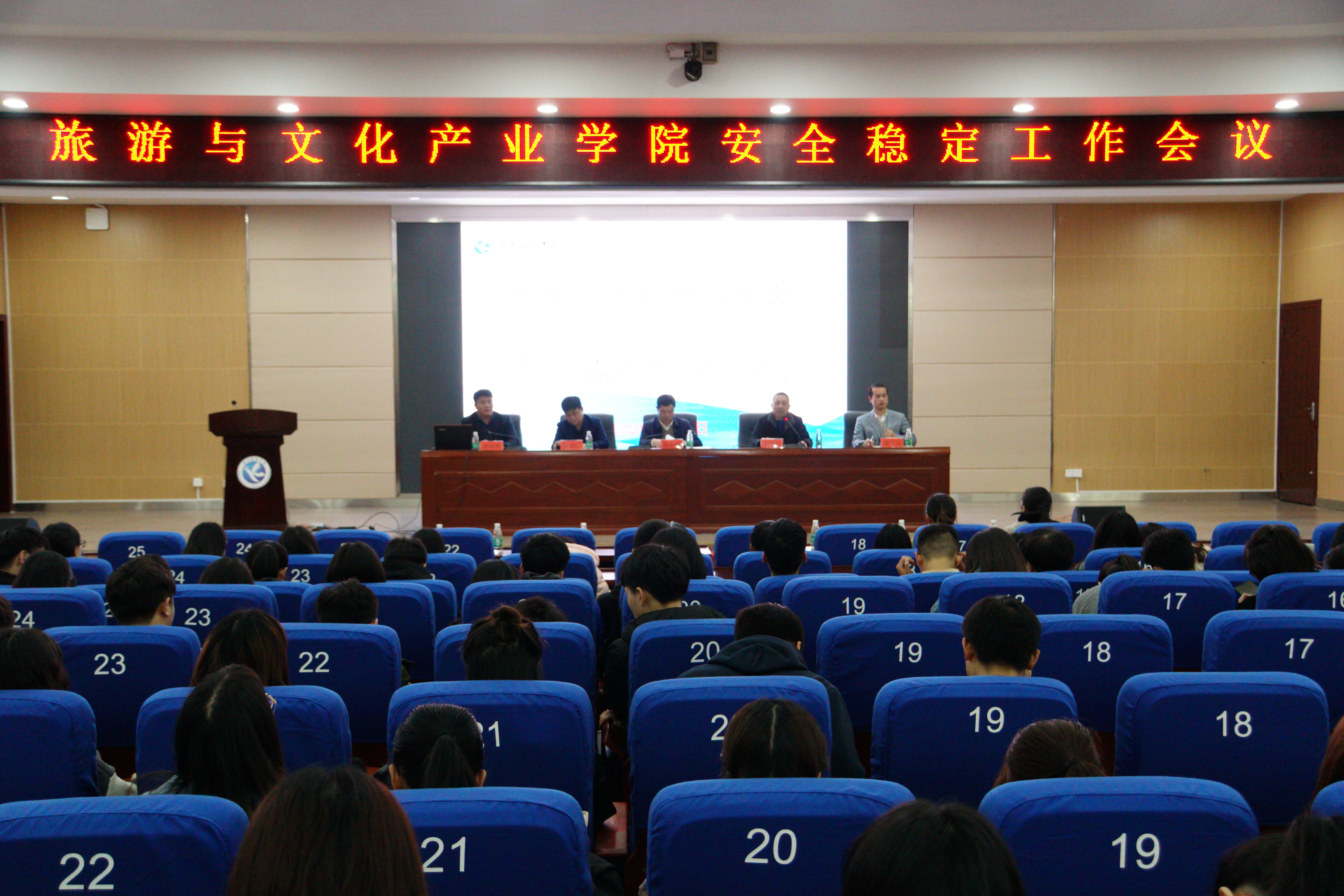 本网讯(通讯员潘洵 肖可)3月12日晚,旅游与文化产业学院在潇湘大讲堂召开安全稳定工作会议。副校长吴小林,党政办主任吴春江,学工部副部长胡敏辉出席。旅游与文化产业学院党总支书记李年终主持会议,旅游与文化产业学院全体学生参加会议。