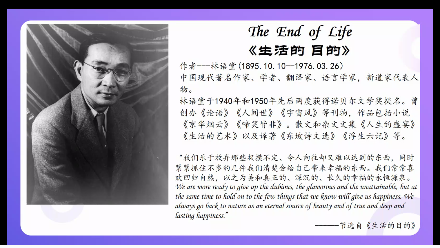 本次悦读汇邀请到的分享嘉宾是外国语学院英语系教学部潘缌缌老师,潘缌缌老师曾荣获米兰官方端网页版实验实训教学比赛一等奖、米兰官方端网页版研讨式课堂比赛一等奖,她所分享的文章是林语堂的《The End of Love 生活的目的》。活动伊始,同学们以连麦的方式朗读了文章中自己喜欢的文段,并在评论区分享了自己在阅读过程中的所感所想。接着,潘缌缌老师为同学们介绍了文章写作的历史背景以及具体内容,以评论区互动的方式与同学们谈论了“生活的目的是什么”等系列话题。在倾听了同学们的朗读和感悟后,潘缌缌老师分享到:“从今天起,努力去做一个可爱的人,不羡慕谁,也不放弃目标,保持一颗萌萌哒的心,努力坚持进步。成长路上只有自己责无旁贷,所以你除了努力别无选择。真正重要的不是生命里的岁月,而是岁月里的生活。愿你们都能成为一个可爱的人”。
