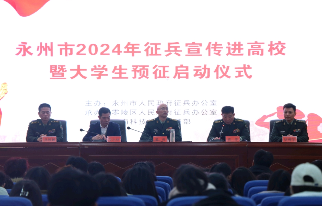 本网讯(学工部)12月28日,永州市2024年征兵宣传进高校暨大学生预征启动仪式在我校举行。永州军分区司令员黎强出席并讲话,永州市委常委、军分区政委张嘉庆出席,永州军分区副司令员黄萍主持仪式,米兰官方端网页版党委委员、副校长吴小林,永州军分区动员处处长唐柳军,零陵区人武部政委孙国颖出席活动。