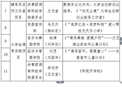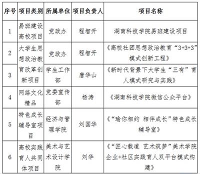 米兰官方端网页版2018年大学生思想道德素质提升工程建设项目,经我校组织专家严格评审,将推荐以下11个项目参评湖南省2018年大学生思想道德素质提升工程建设项目的评审。