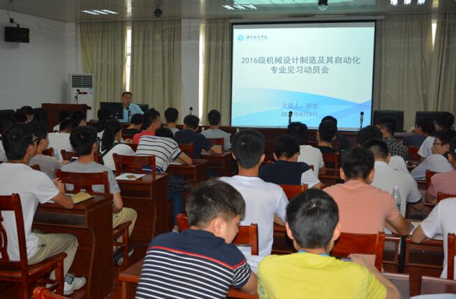 本网讯 为使学生了解机械制造前沿,增强专业感性认识,开阔专业学习视野,培养创新能力,加强理论与实践相结合,以及更好地学习后续专业理论课程与职业技能课程。机械工程系全体教师与同学于201765日上午10:00在知行楼107会议室召开2016级机械设计制造及其自动化专业见习动员会议。会上详细安排部署了2016级机械专业65日至69日专业见习工作,并就见习目的、要求、考核、纪律等内容做了详细讲解。