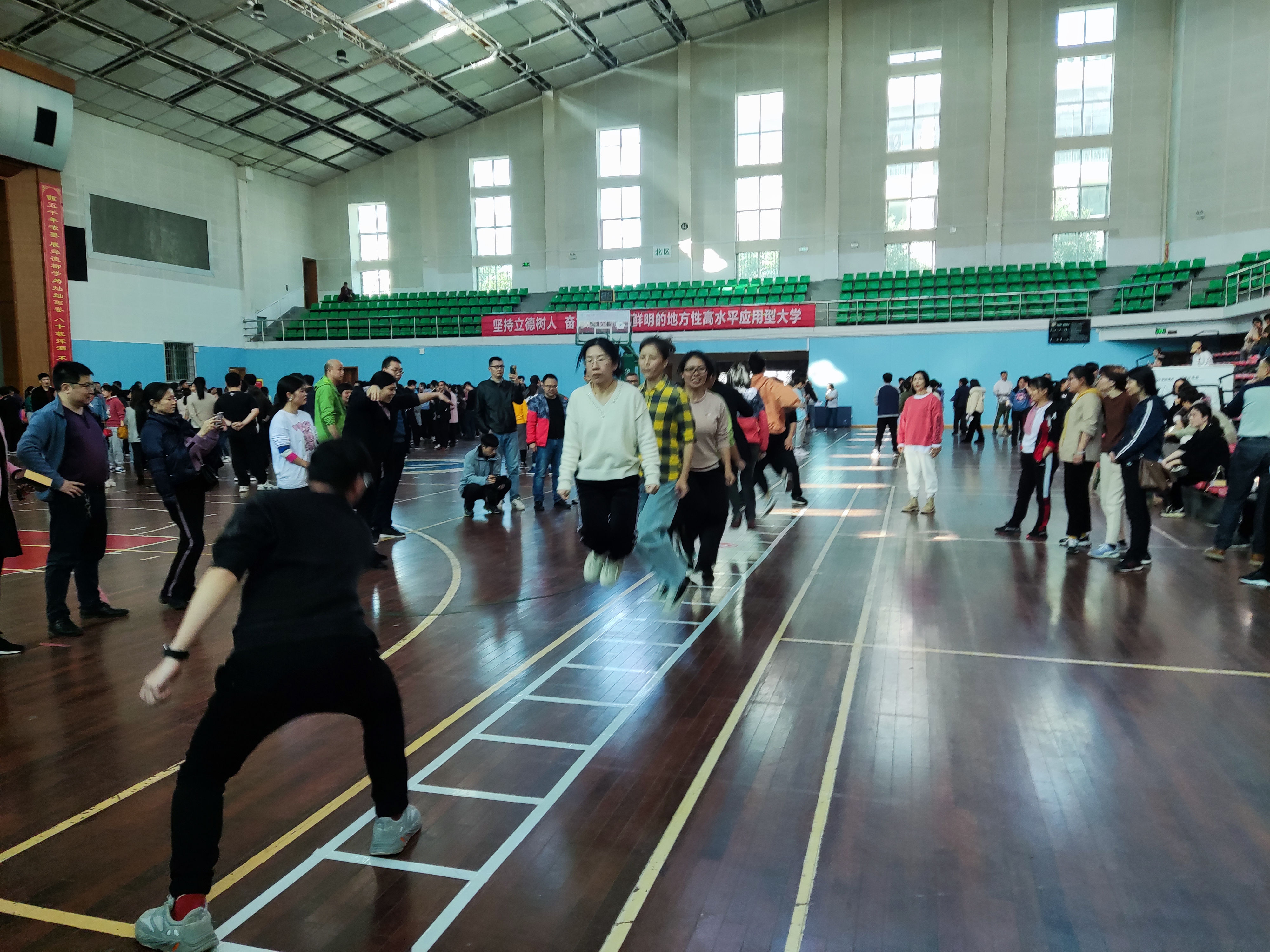 本网讯(通讯员 向慧蓉)3月8日,为庆祝“三·八”国际劳动妇女节,活跃女教职工业余文化生活,由校工会组织的庆“三·八”跳绳比赛在体育馆举行,全校共有20余个参赛队伍参加比赛。经过激烈的角逐,我院荣获三等奖。