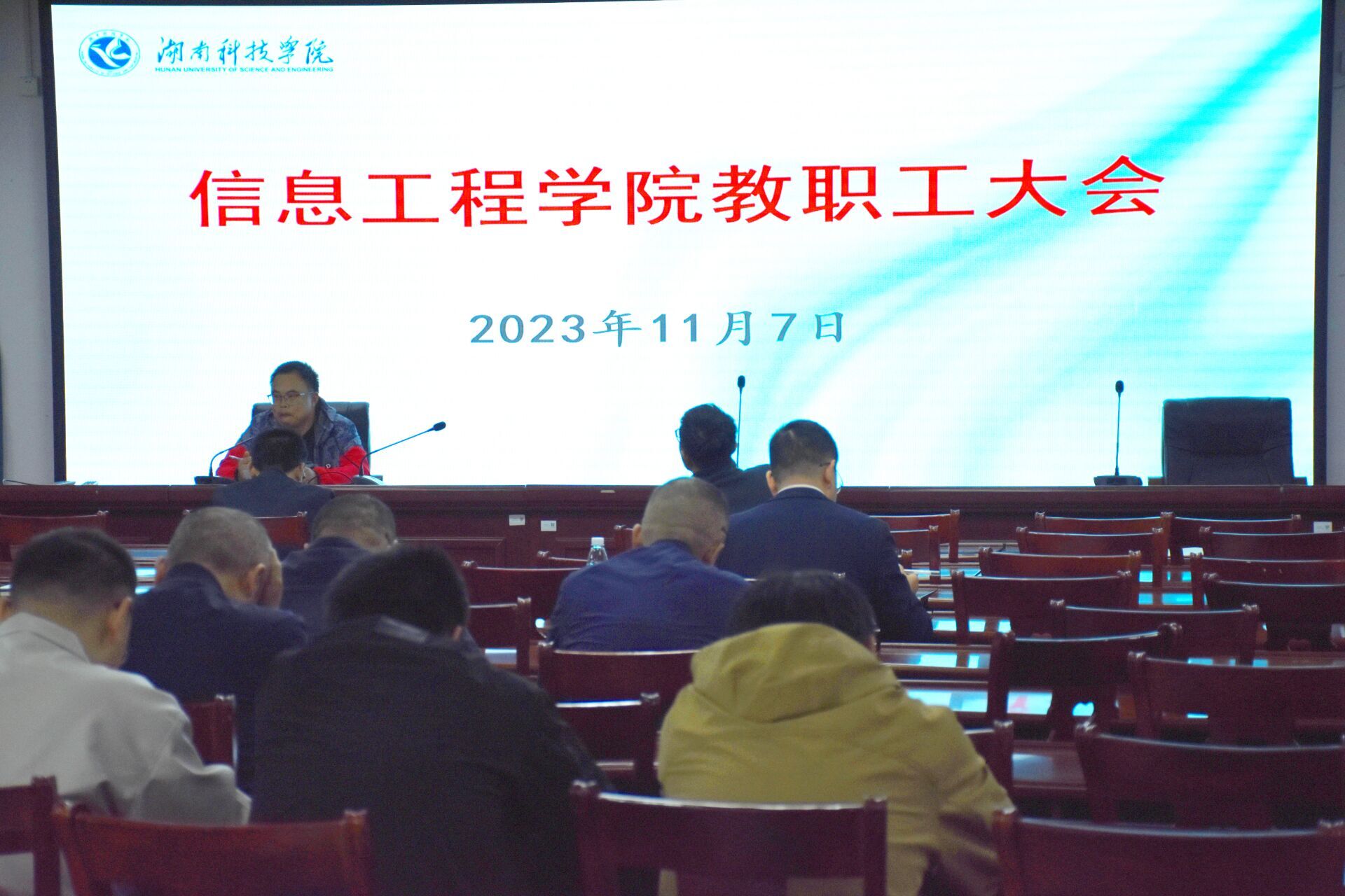 本网讯(通讯员 范宇翔 刘兵兵)11月7日,我院开展2023年下学期第三次政治理论学习,院领导及全体教职工参与,会议由院长尹向东主持。