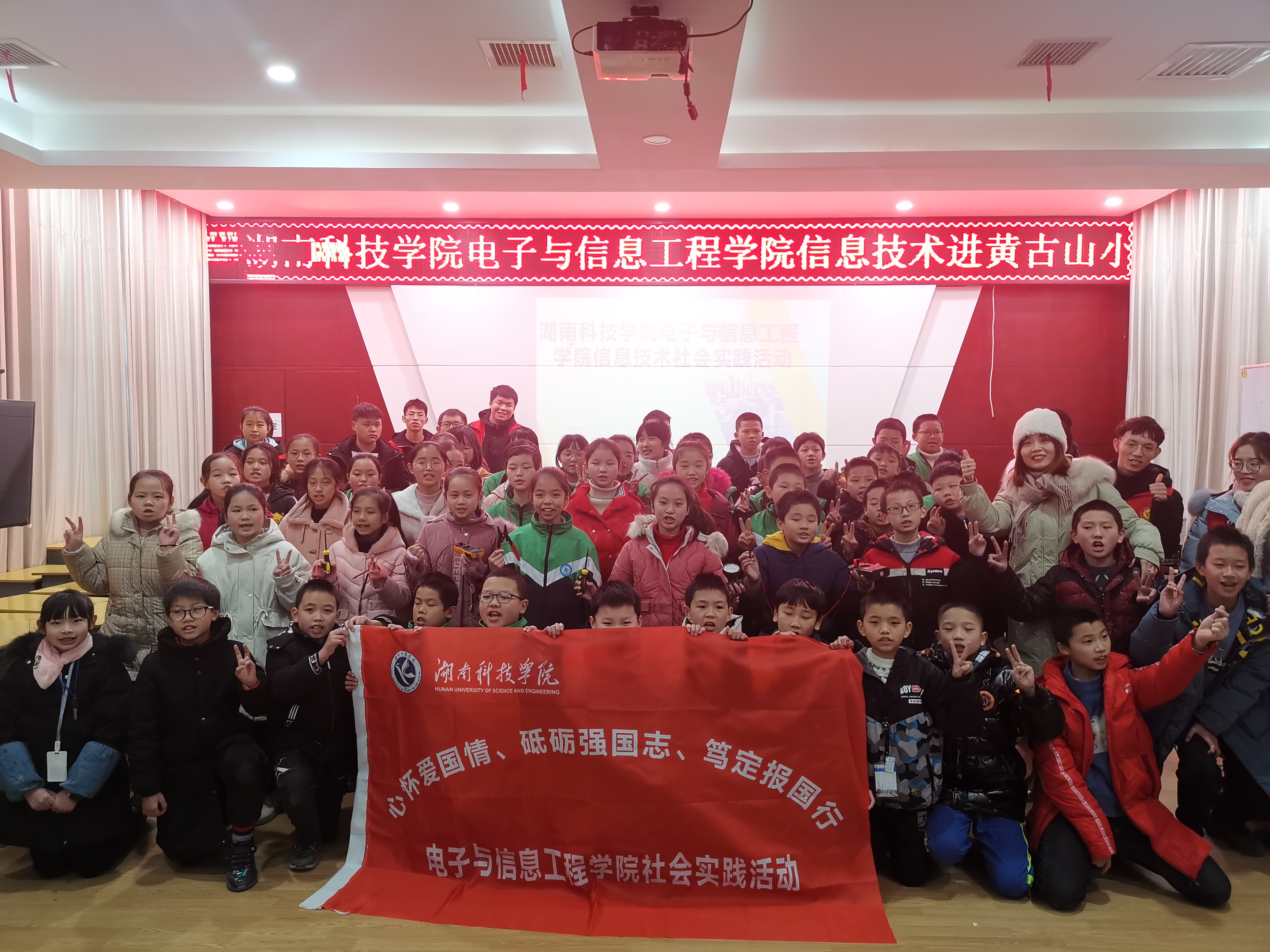 为了让小学生亲身感受信息技术带来的魅力,培养小学生了解、感知和探索信息技术的兴趣。2020年12月15日,米兰官方端网页版电子与信息工程学院科普实践团队前往零陵区黄古山小学,开展以“心怀爱国情,砥砺强国志,笃定报国行”为主题的社会实践活动。