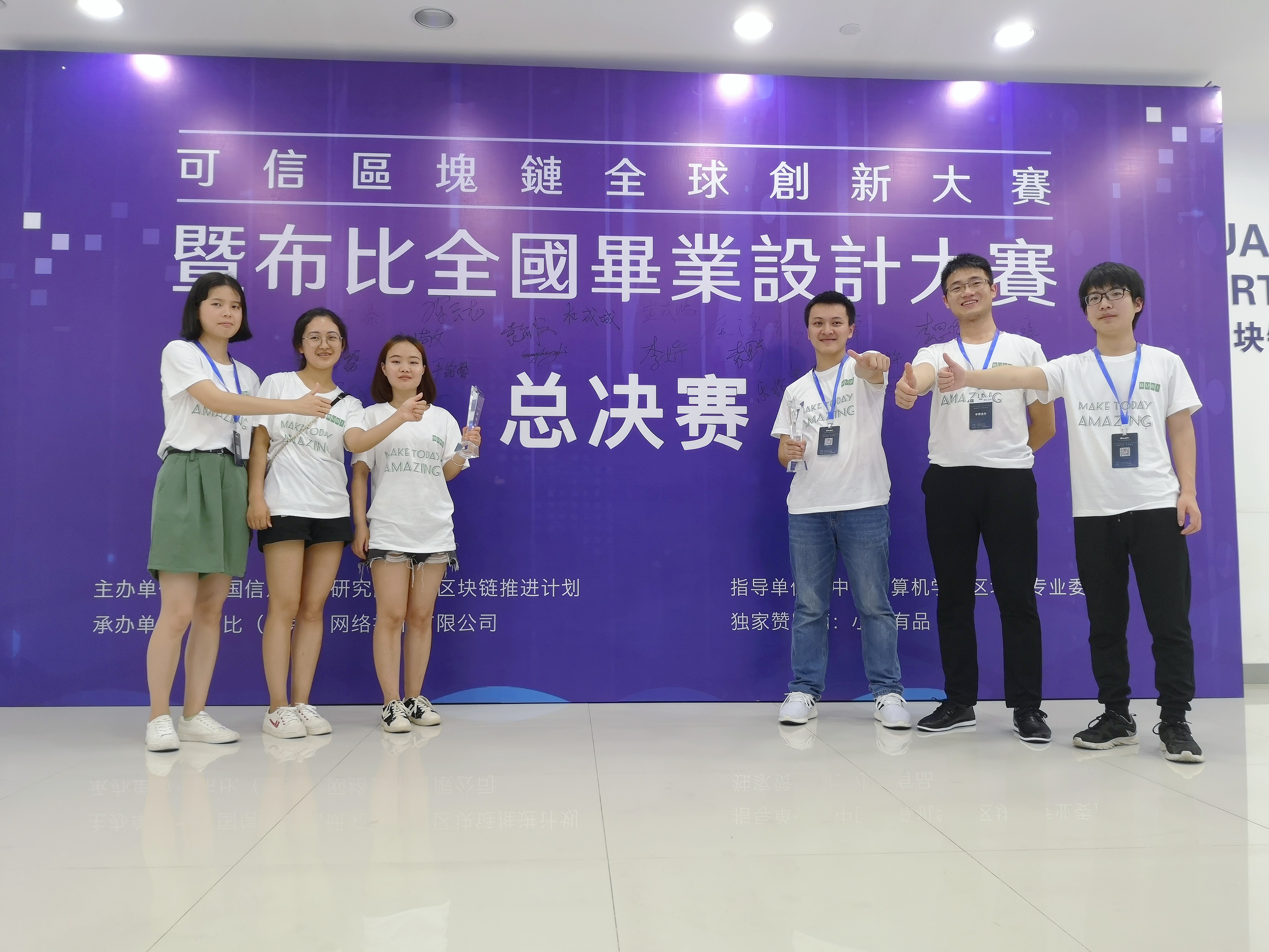本网讯 由中国信息通信研究院主办、中国计算机学会区块链专委会协办、布比(北京)网络技术有限公司承办的可信区块链全球创新大赛日前落下帷幕,我校参赛的两支队伍过江队、风之彩队以第三名和第十二名的好成绩分别获得大赛的二等奖和优胜奖,其中过江队还获荣获了全场唯一的最佳人气奖,为我校在此类赛事的最好成绩。