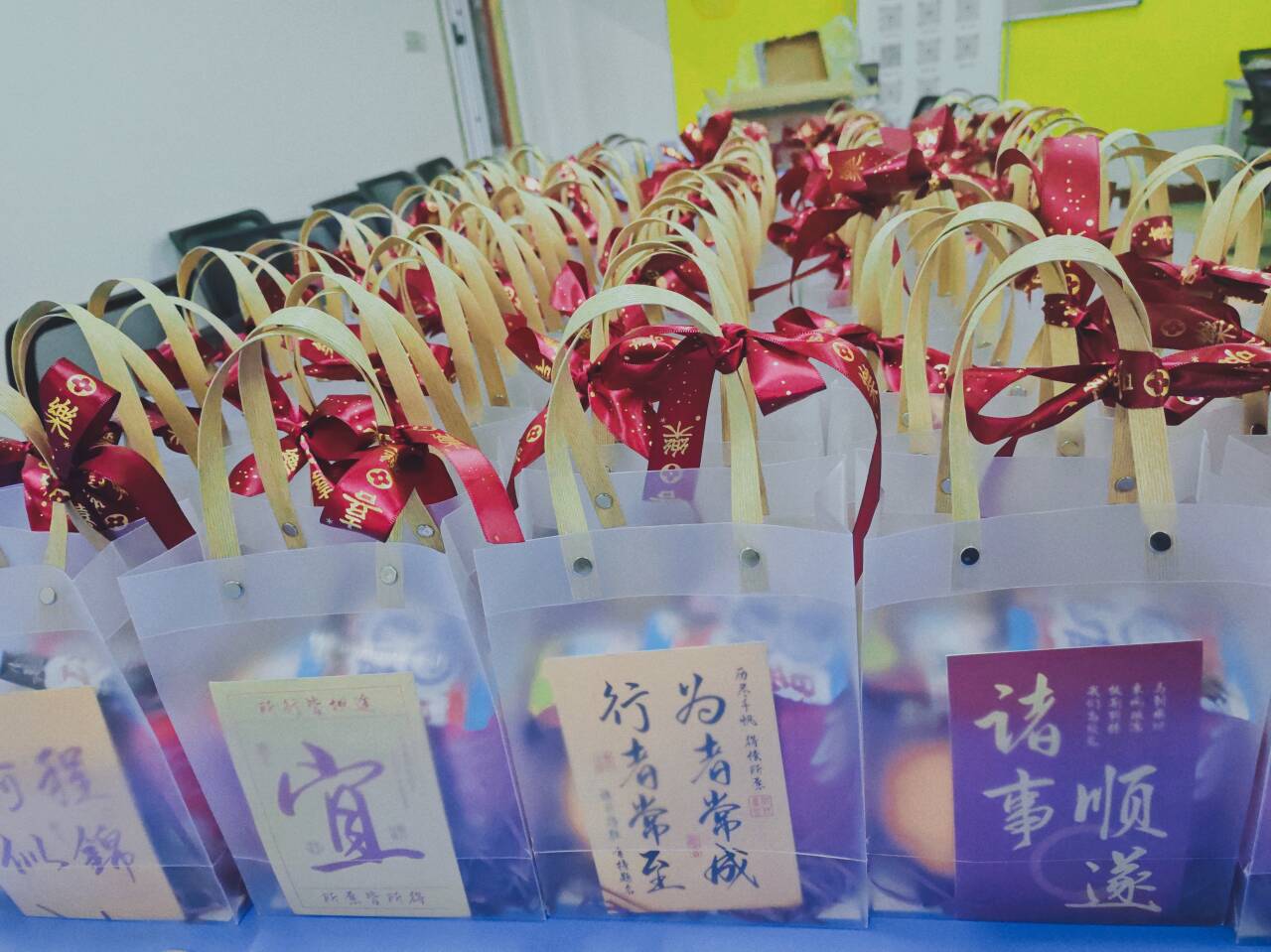 随后,老师们为考研学子分发满载希望的考研加油包,包内精心放置各类寓意深刻的物品,如“‘苹’稳上岸”苹果、“如你所‘愿’”薯愿薯片、“心想事‘橙’”橙子、“‘巧’克难题”巧克力,以及明信片上面鼓舞人心的话语,为学子们送去一份份诚挚的祝福。