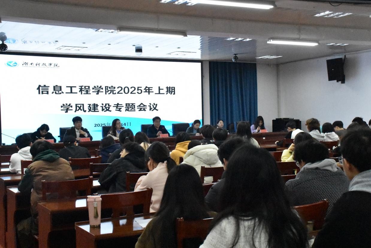 本网讯(通讯员 张子萱 唐巧娟)3月14日,学院召开2025年上期学风建设专题会议。学院党总支副书记夏汉伟,学工办主任唐鹤轩、全体辅导员,各班班长、团支书等学生干部共110余人参加会议。会议由唐鹤轩主持。